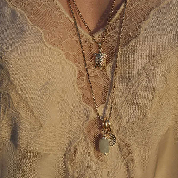 A&C Oslo boho-stiilis kilpkonna ripatsiga kaelakee. Tipatsit kaunistavd valged opaalid ja värvilised kristallid.