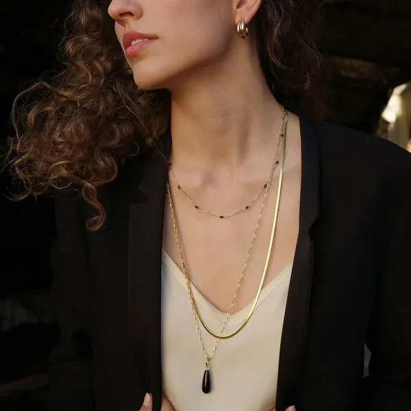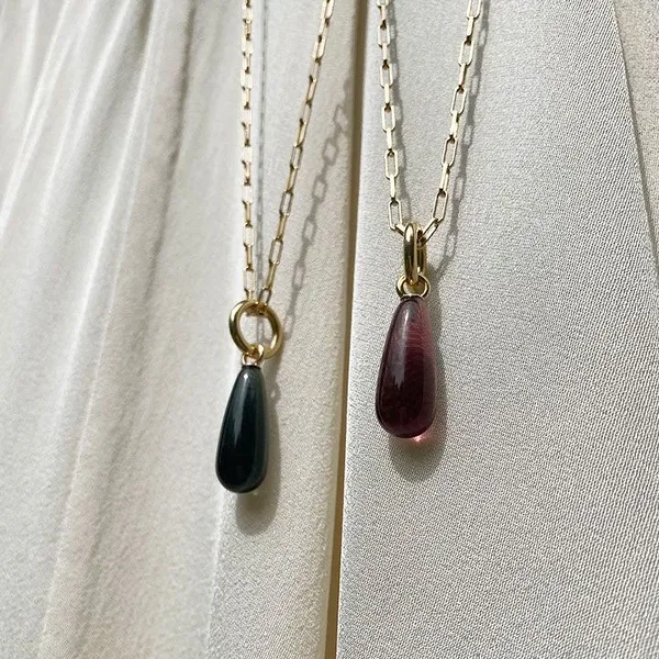 A&C Oslo mustja tilgakujulise ripatsiga kaelakee Vintage Drops. Käsitsi lõigatud klaas.
