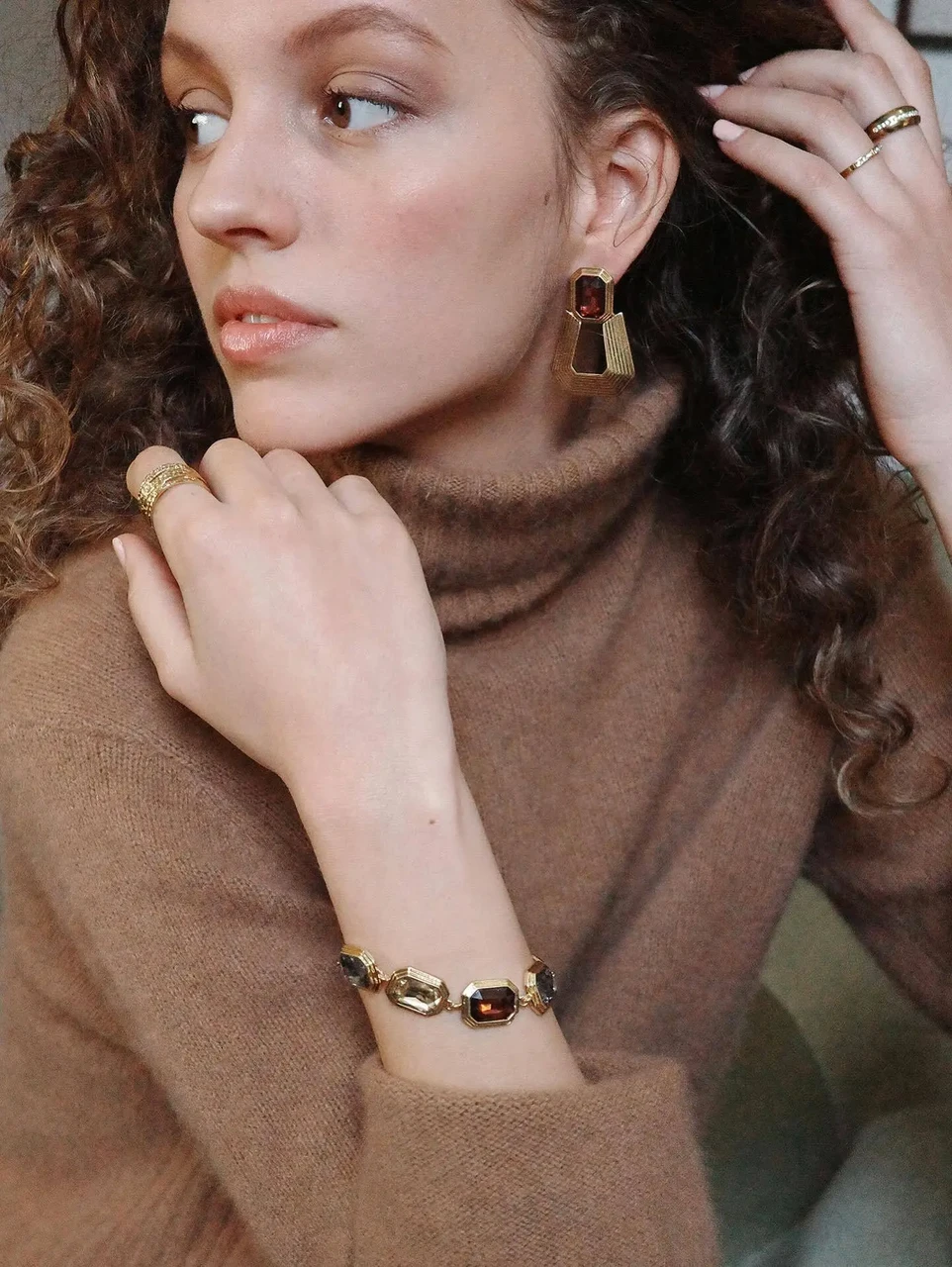 A&C Oslo burgundia värvi lihvitud klaasiga Statement kõrvarõngad Grace. Kollektsioon on inspireeritud 80ndate ja 90ndate peoehetest, mille on lisatud kaasaegne lihv.