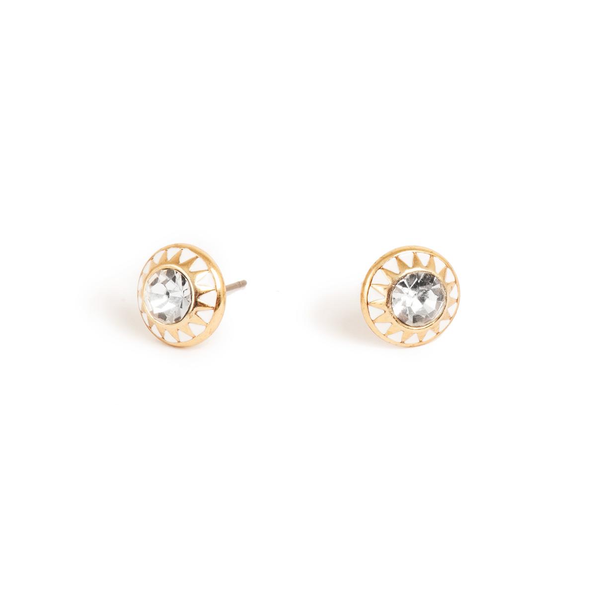 A&C Oslo kõrvarõngad Morning Sun Gold. Käsitsi maalitud valge email.