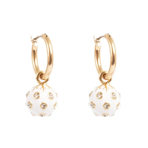A&C Oslo rippuvad lumepalli kõrvarõngad Snowflake. Kõrvarõngaid kaunistavad käsitsi maalitud valge email ja säravad kristallid.