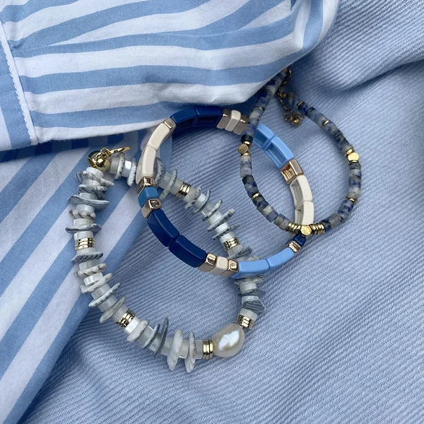 A&C Oslo emailitud värviliste lülidega käevõru Enamel Tiles Blue.