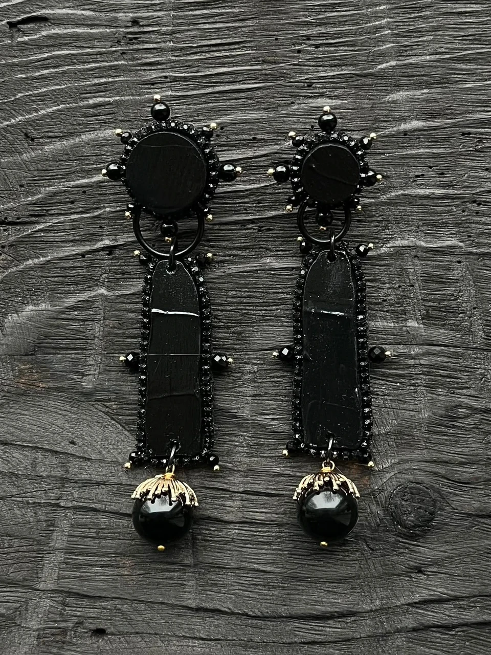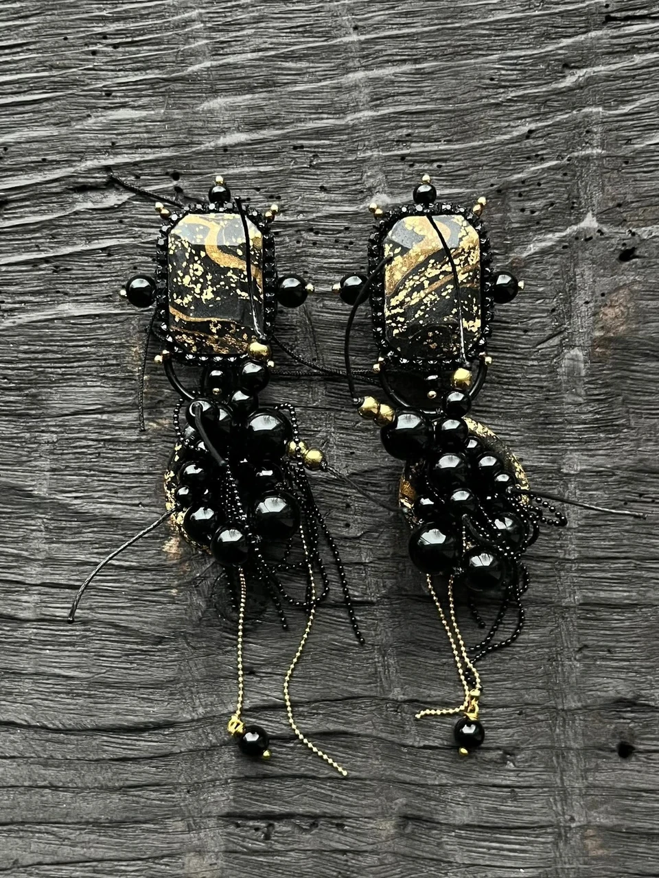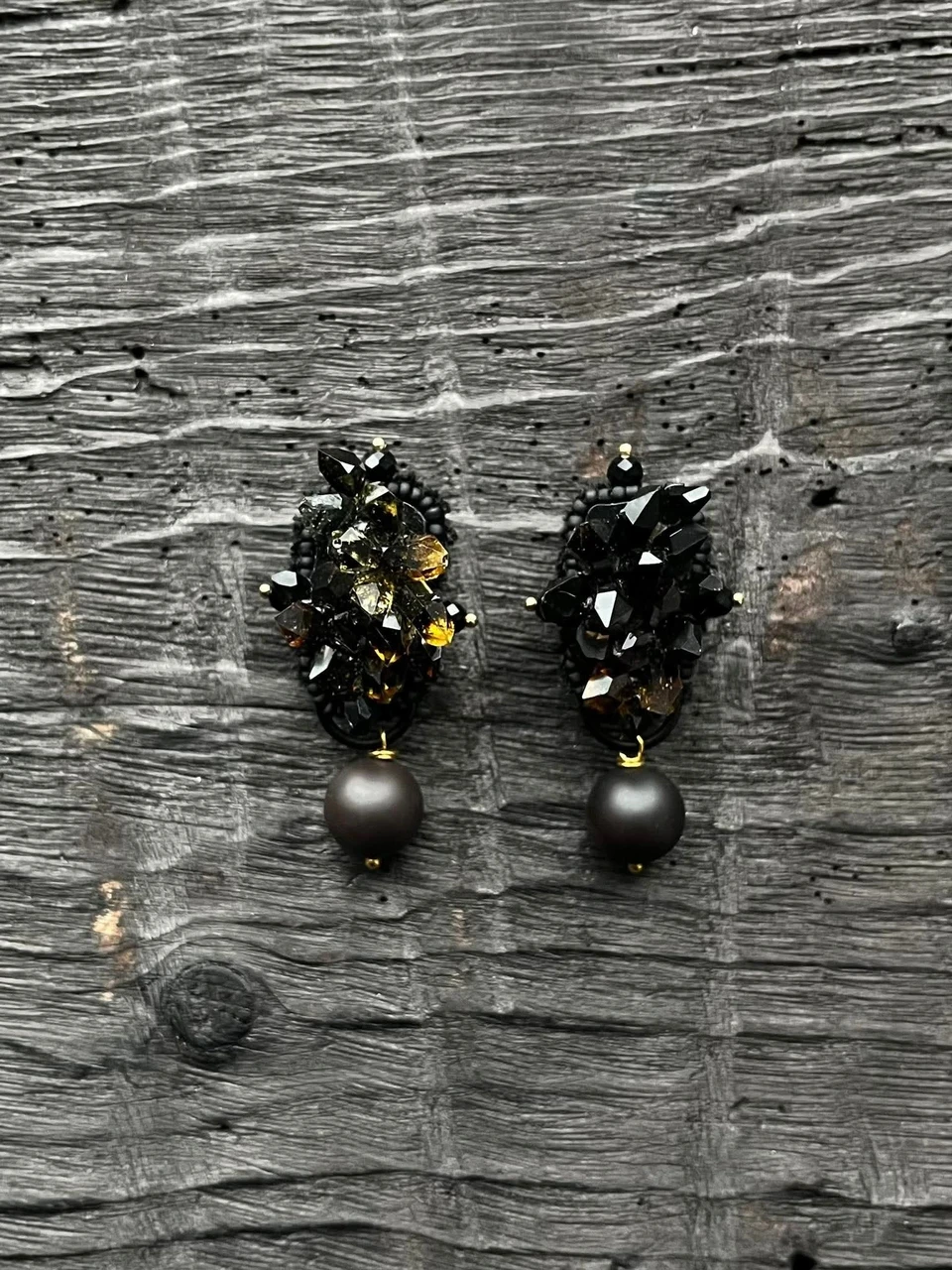 C H I kõrvarõngad - Roostetooni mageveepärlid, Mustad kettnarmad