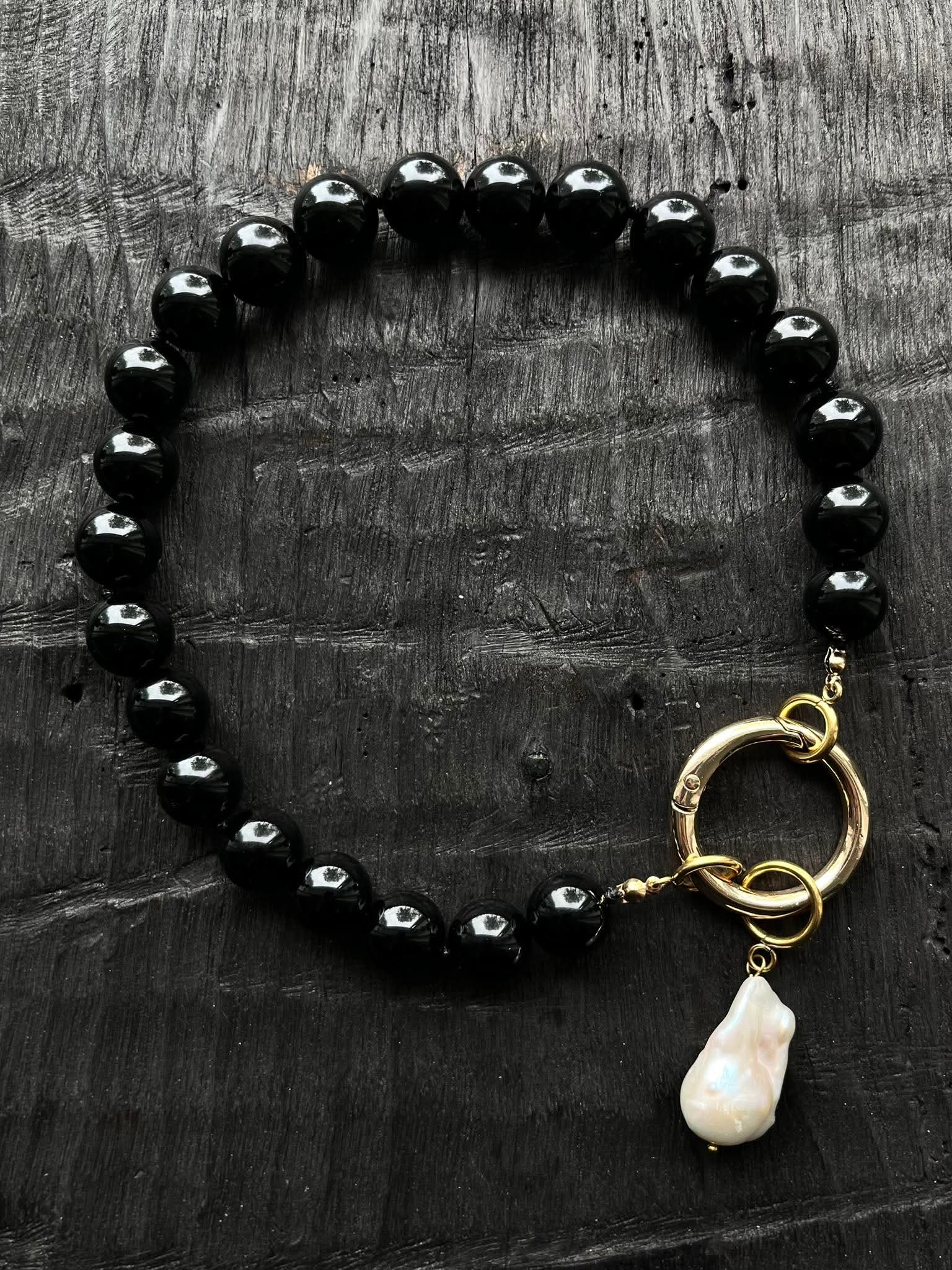 C H I Bold Accessories Statement kaelakee Onyx Boroque Pearl.