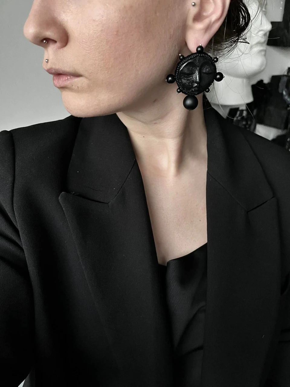 C H I Bold Accessories näomotiividega Statement kõrvarõngad Black moon Face.