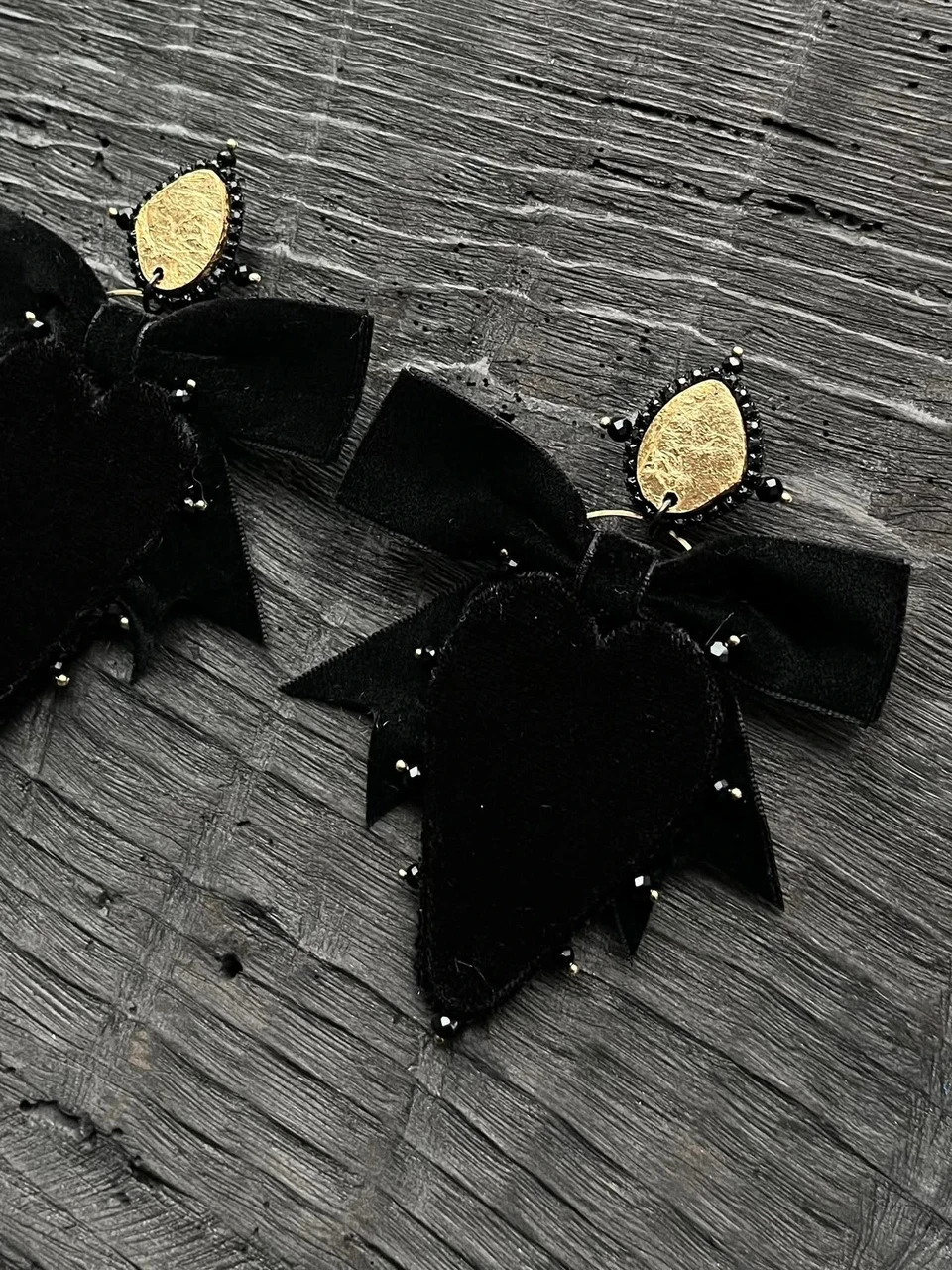 C H I Bold Accessories sametist südamete ja lipsudega Statement kõrvarõngad Black Vlevet Bow Heart.