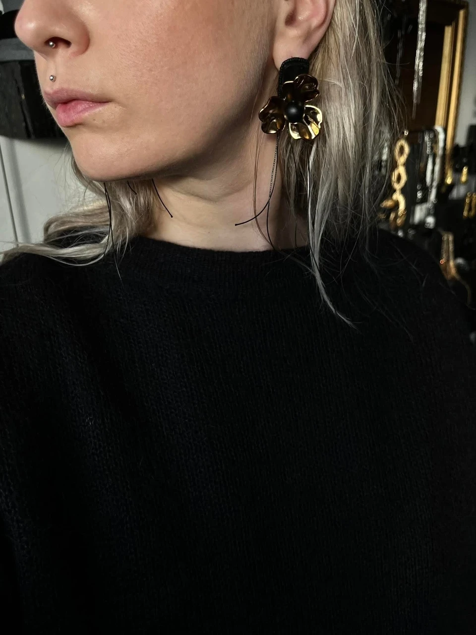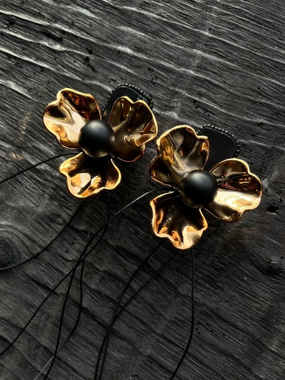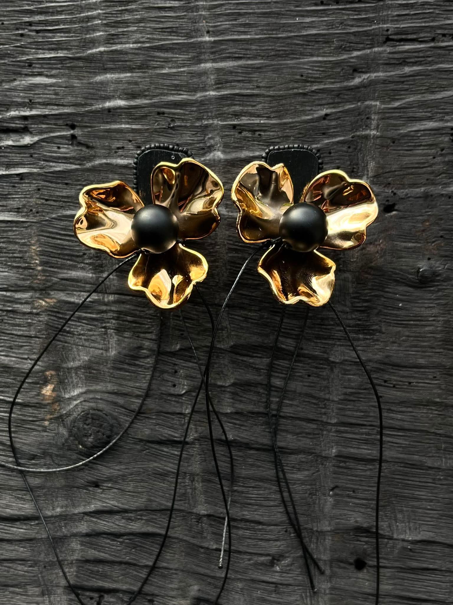 C H I Bold Accessories kuldsete lillede ja mustade narmastega kõrvarõngad Golden Flower.