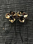 Mustpolümeersavi, oonüksihelmed, Toho helmed, mustad narmad, kullatud lillemotiivid.
