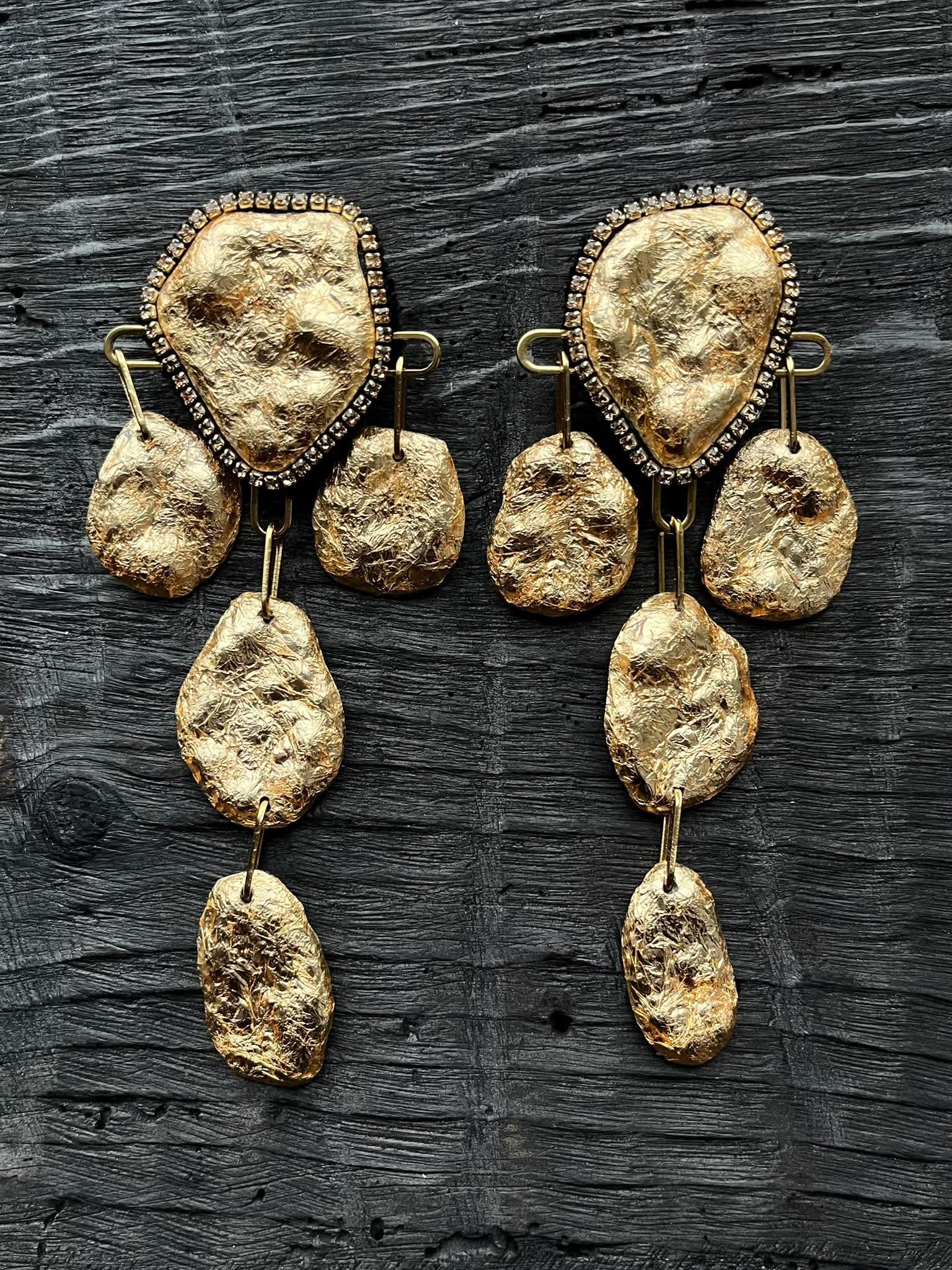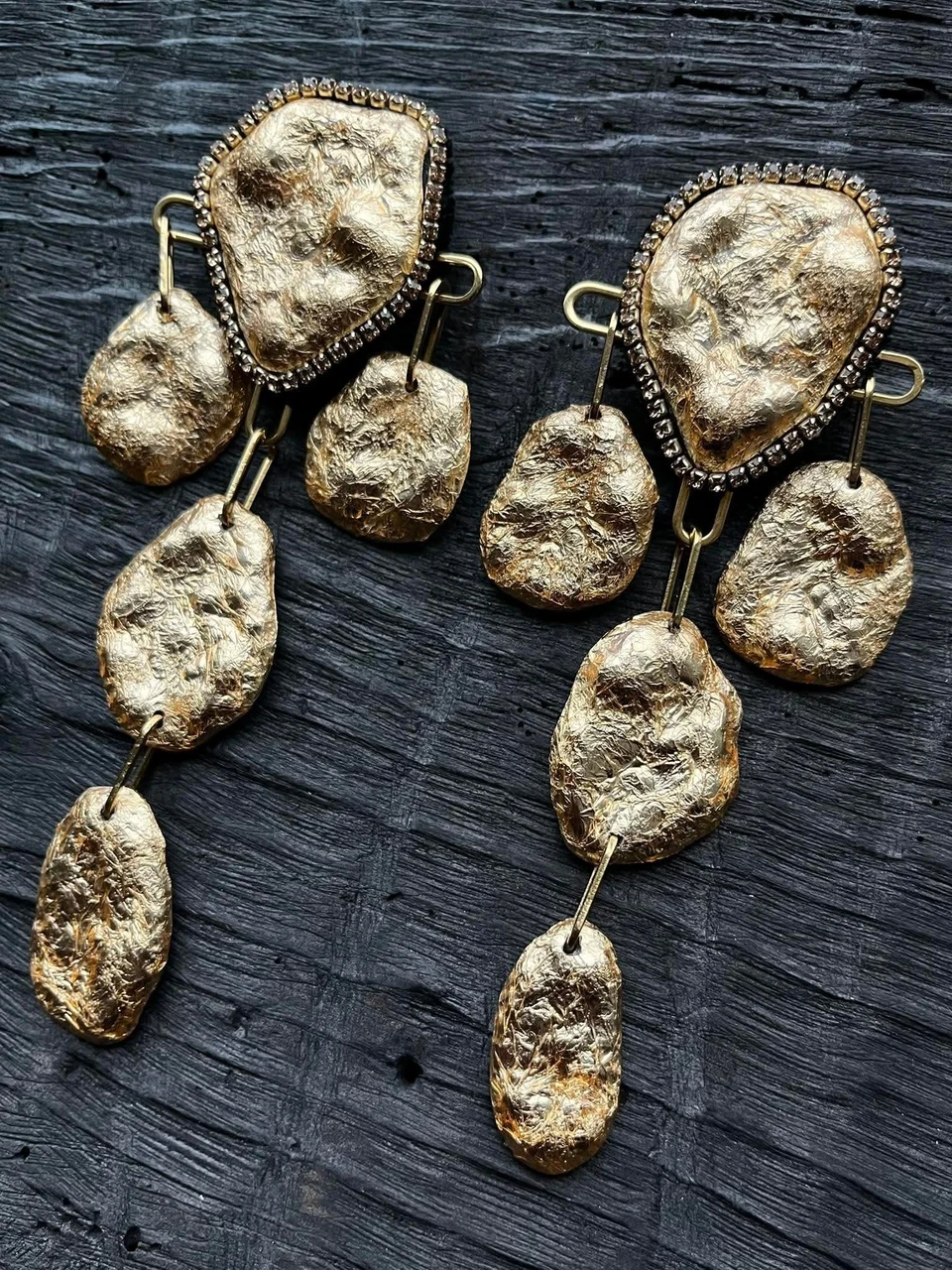 C H I Bold Accessories kuldse fooliumiga kaetud nelja ripatsiga Statement kõrvarõngad Irregular Golden Foil.