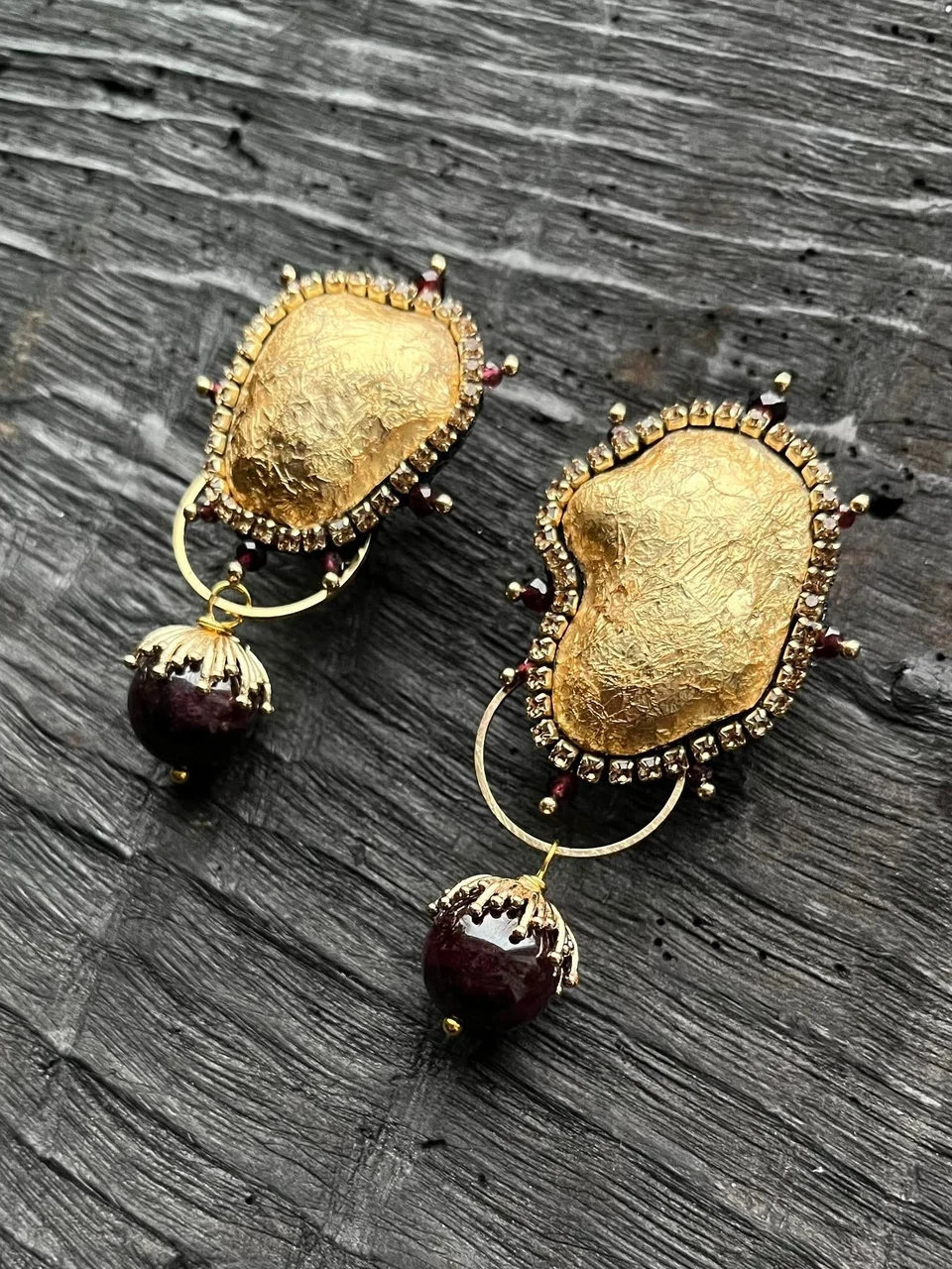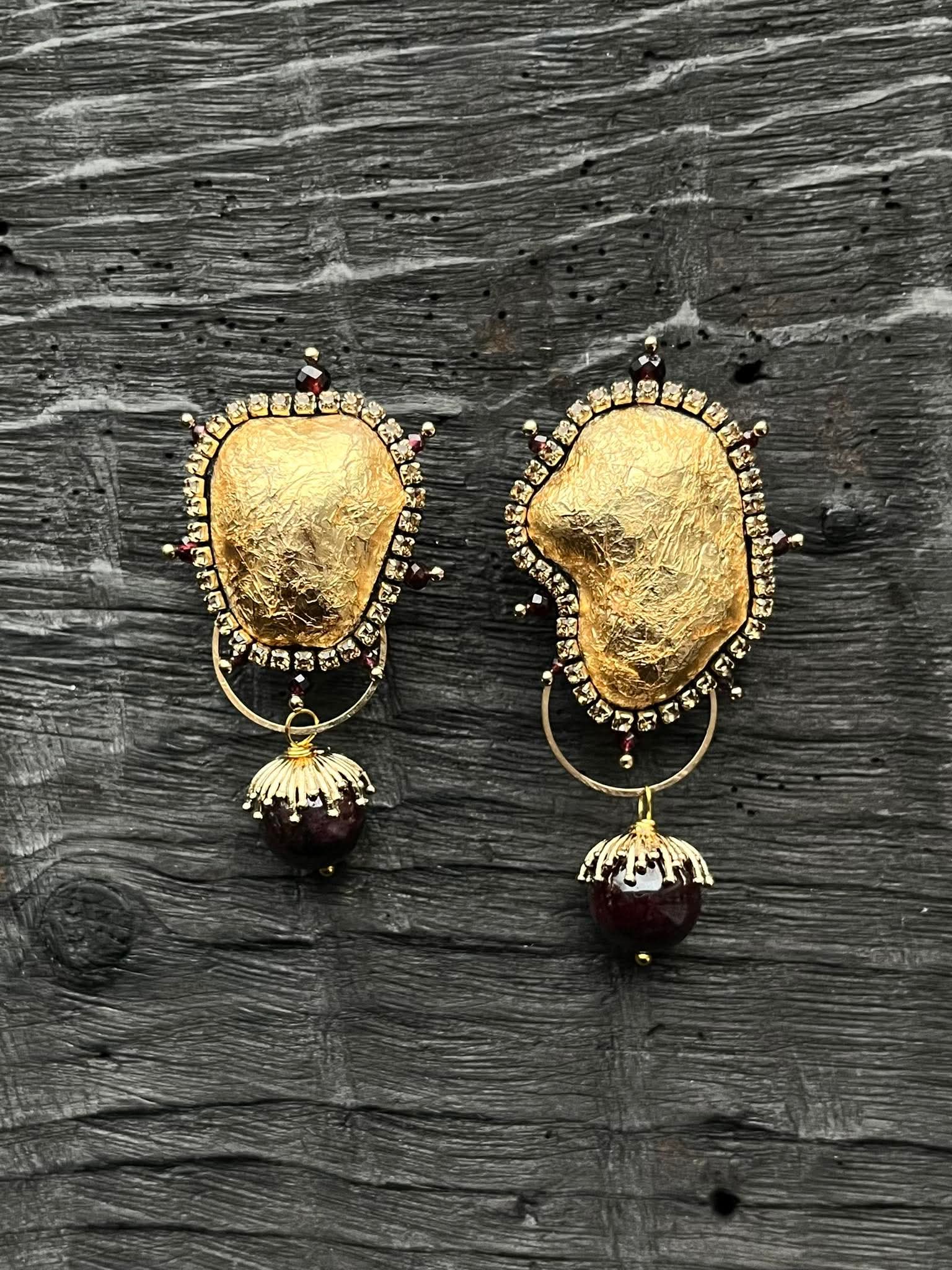 C H I Bold Accessories kuldse fooliumiga kaetud Statement kõrvarõngad, mida kaunistab poolrvääriskivist (granaat) ripats.