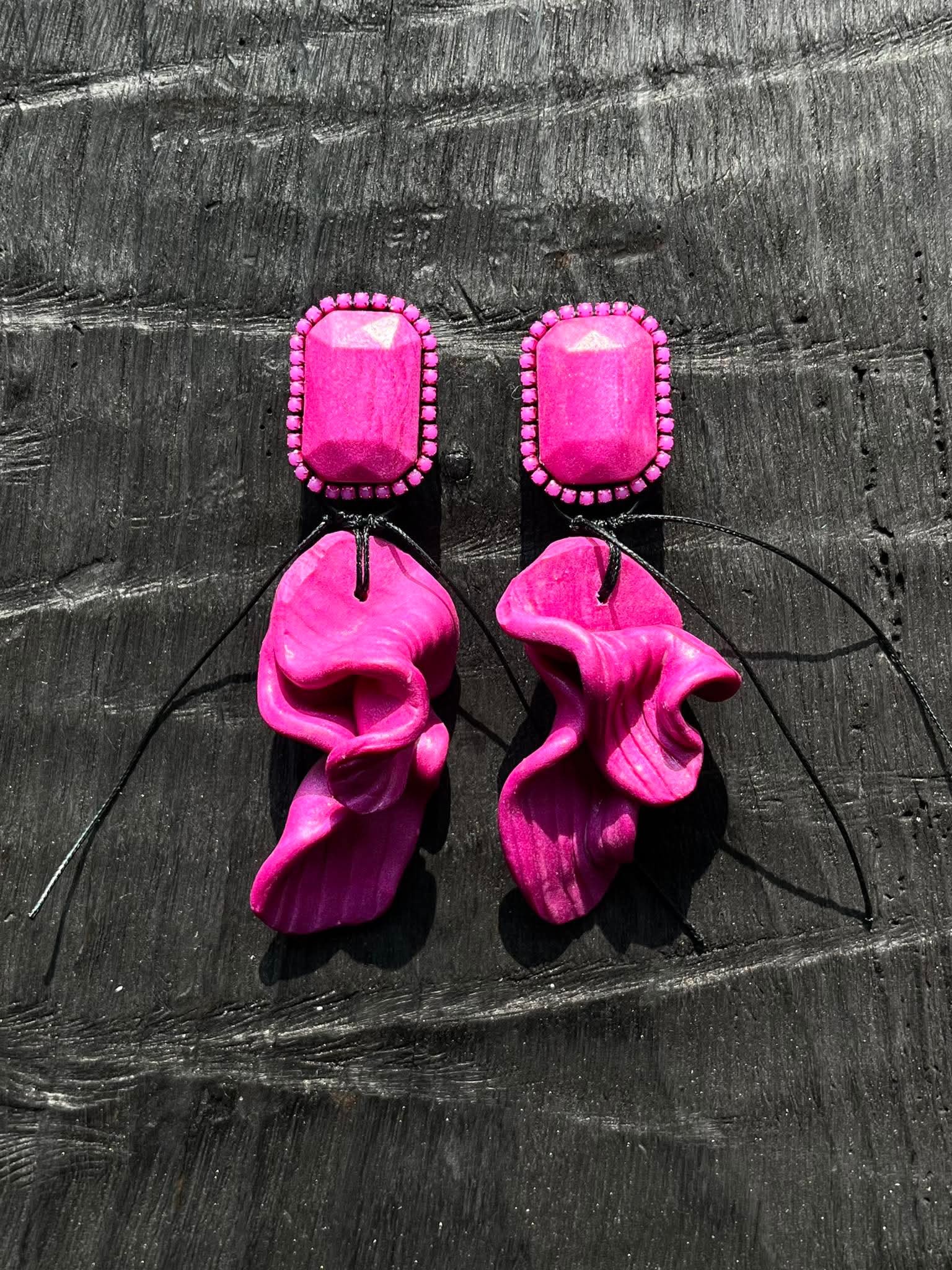 C H I Bold efektsete polümeersavist riptatsitega kõrvarõngad Magenta Pink.