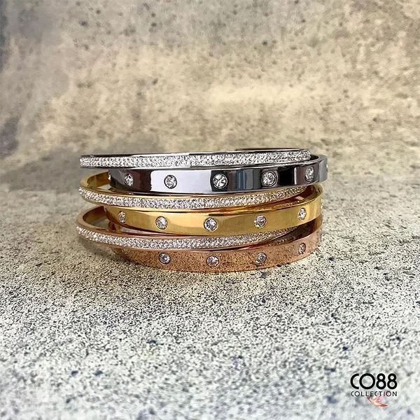 CO88 Collection säravate tsirkoondega võrukujuline käevõru. Käevõru sees sõnum "ENJOY THE LITTLE THINGS"