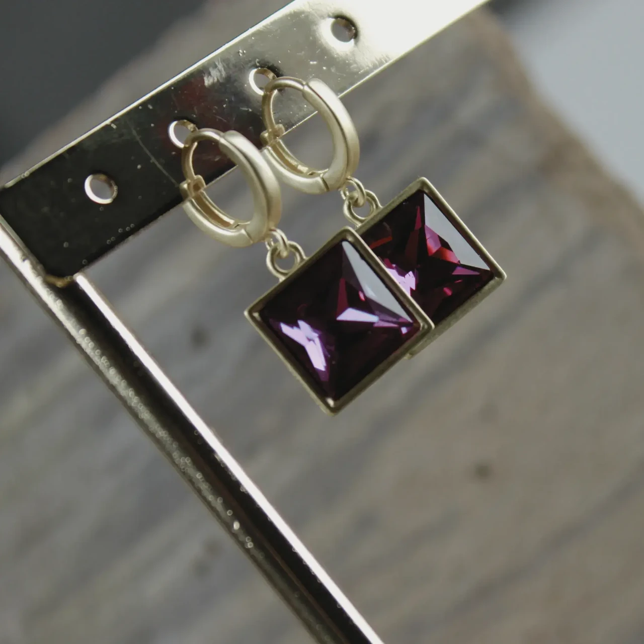 Harmony Waterproof Single Stone Hoop kõrvarõngad - Green/Gold