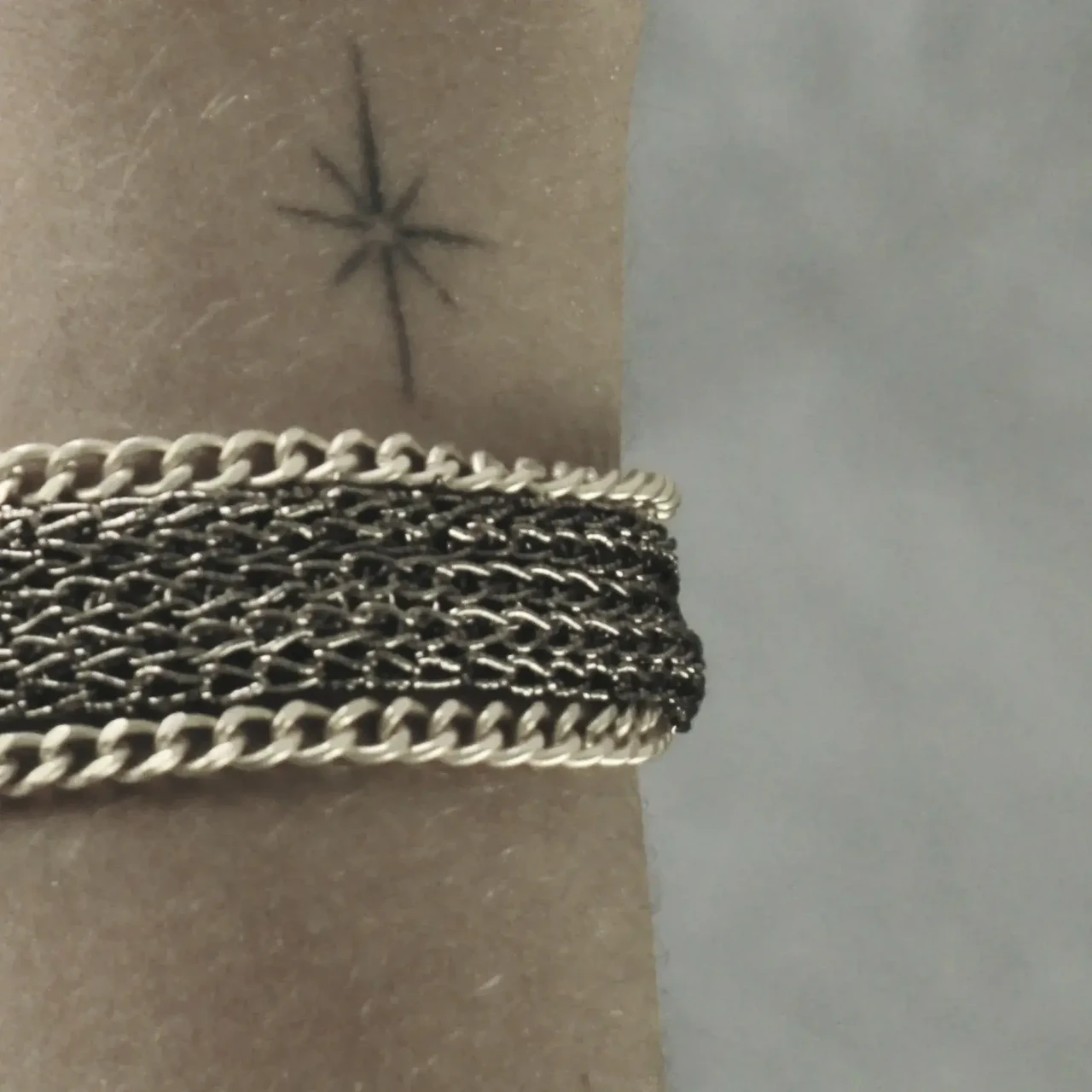 Dansk Copenhagen luksusliku disainiga metallniidist detailidega käevõru Anastazia Knitted Gold.