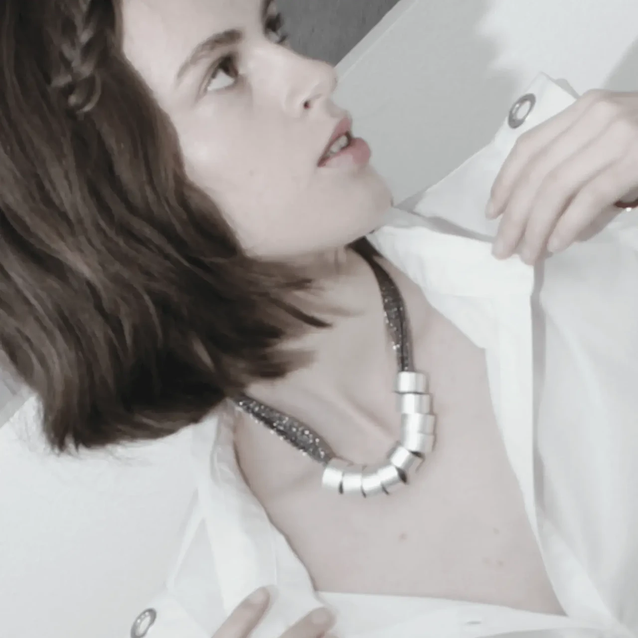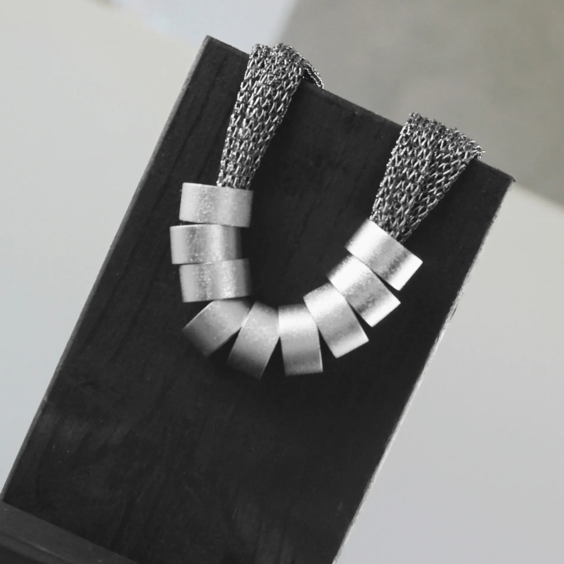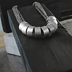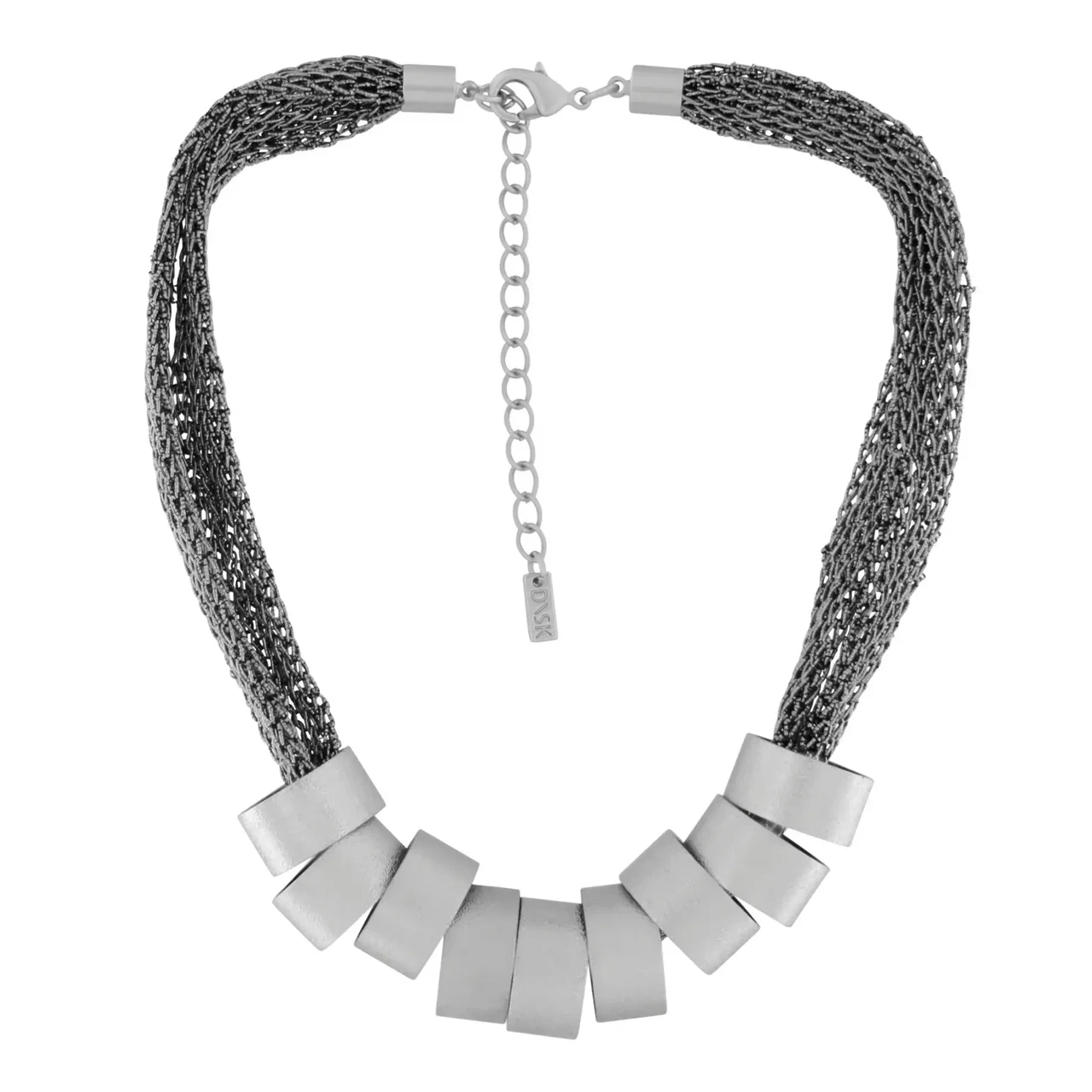 Dansk Copenhagen metalse kangaga Statement kaelakee Anastazia Knitted Multi Ring Silver.