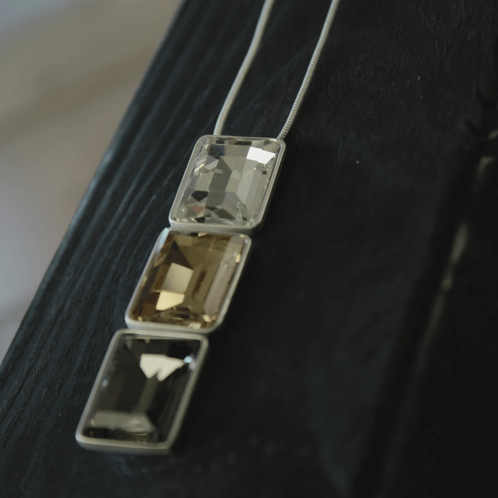 Dansk Copenhagen kolme kandilise kristalliga reguleeritav kaelakee Audrey Adjustable 3 Stone Silver.