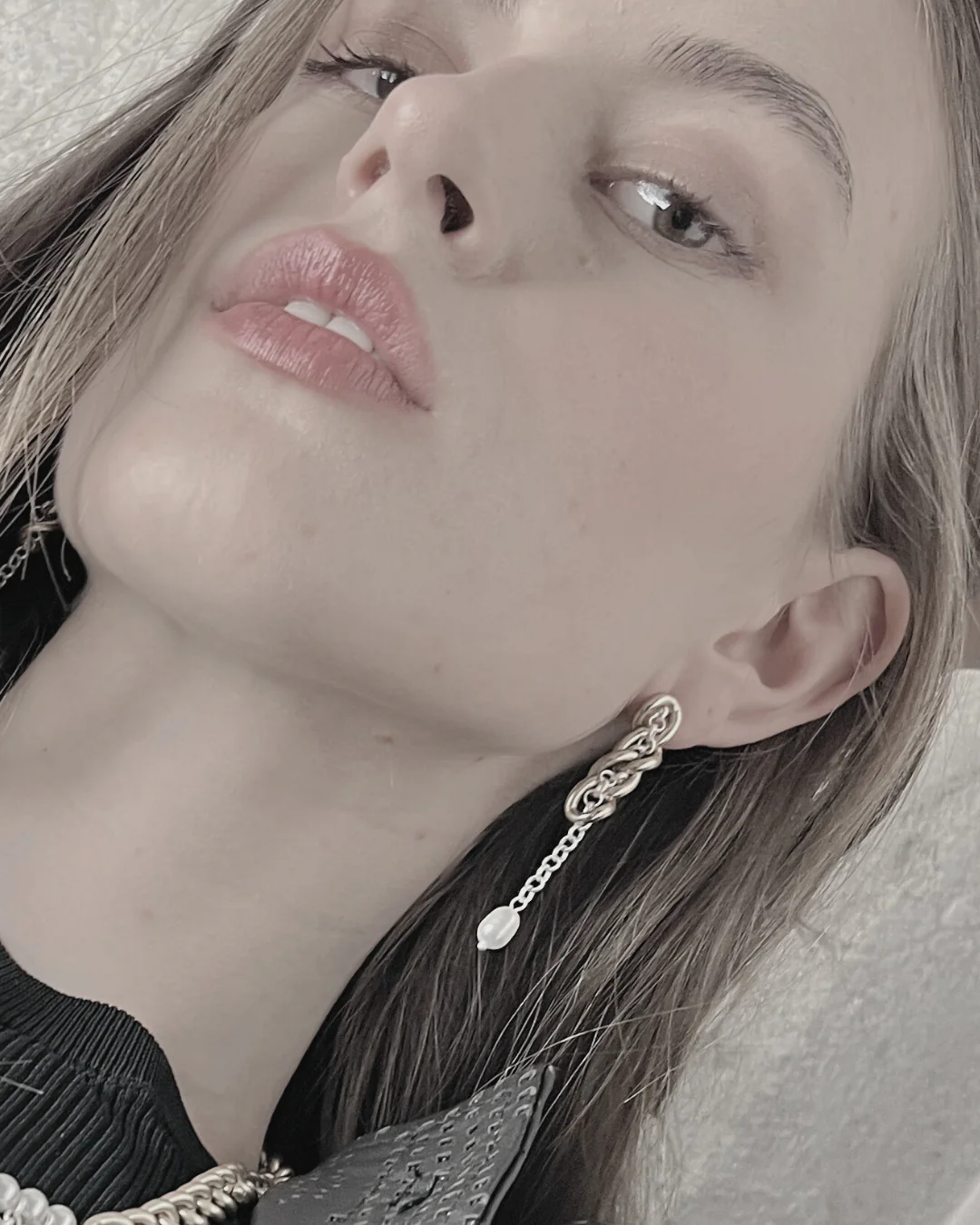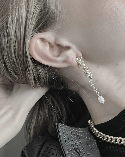 Dansk Copenhagen põimitud kettide ja mageveepärliga rippuvad kõrvarõngad Audrey Chunky 2 Tone Chandelier Pearl Gold.