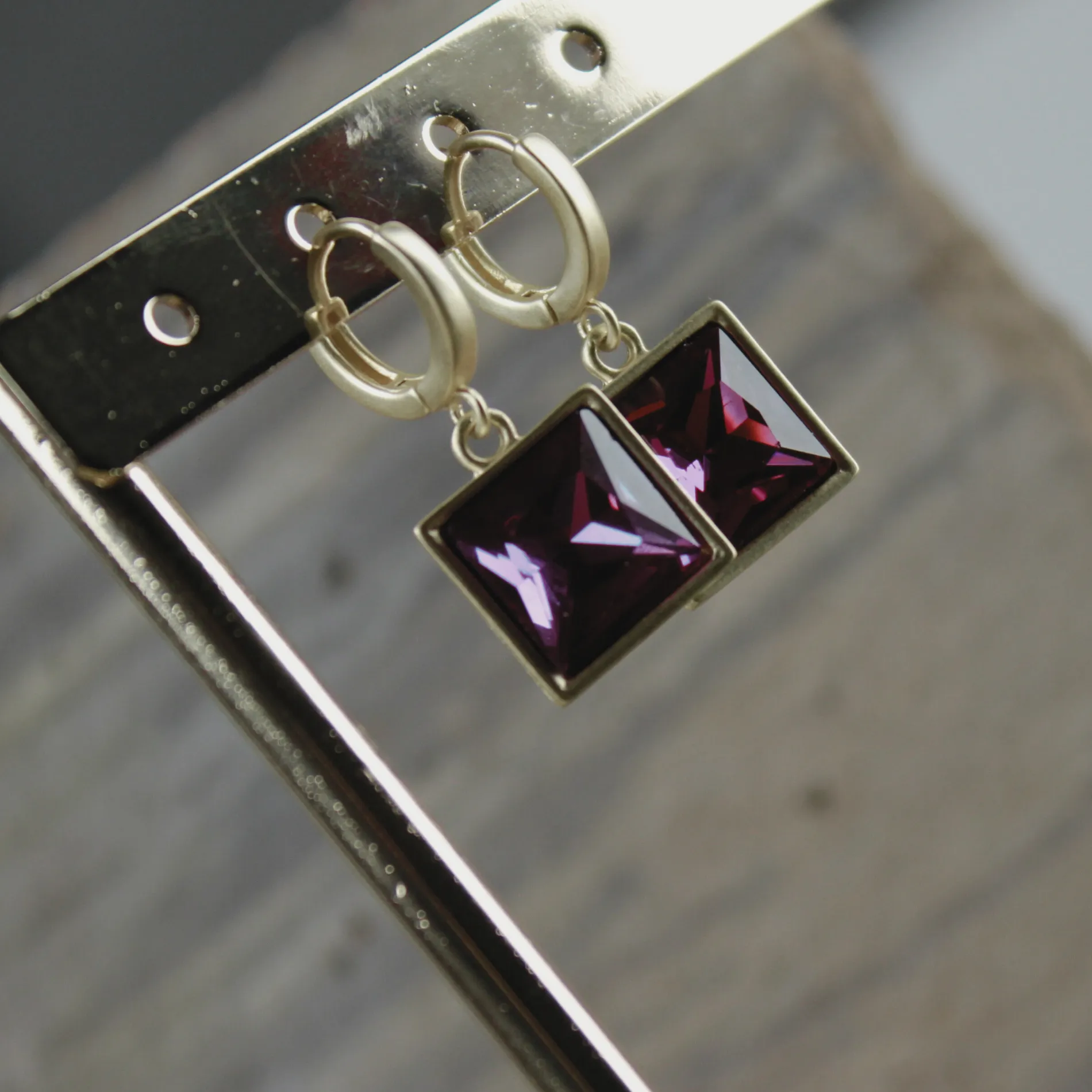 Dansk Copenhagen fuksiaroosade kristallidega rippuvad kõrvarõngad Audrey Fucshia Huggie.