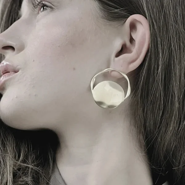 Dansk Copenhagen skulpturaalse disainiga Statement kõrvarõngad Courage Waterproof Brushed Artfull Round Statement Gold.