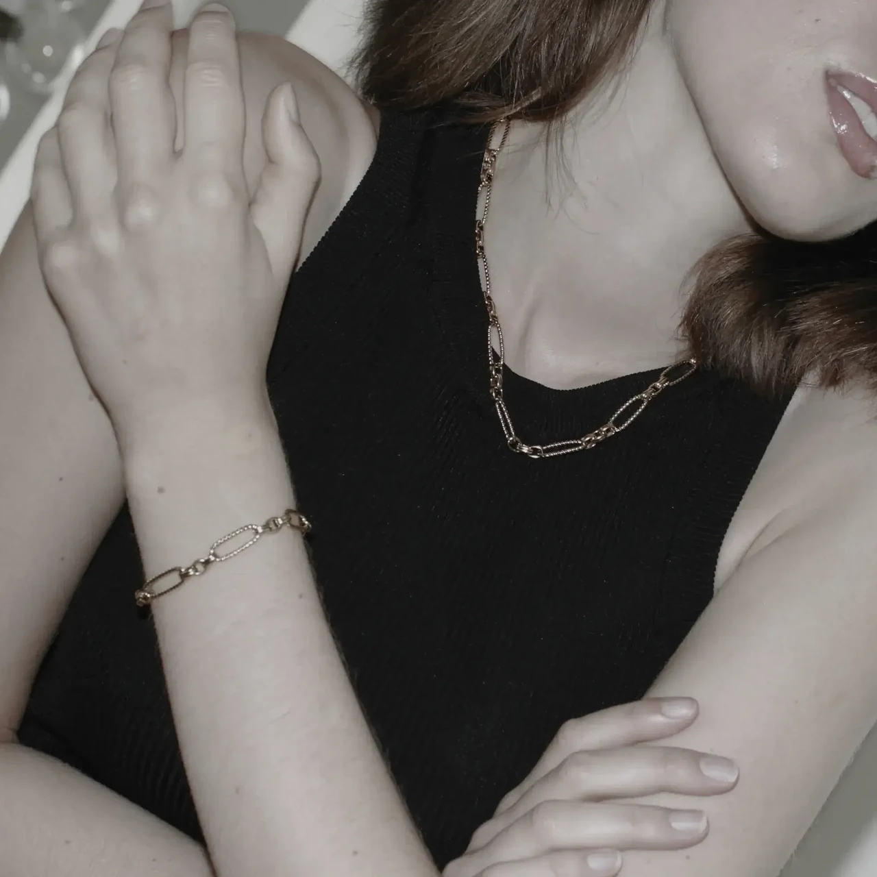 Dansk Copenhagen kõrgkvaliteetse kullakattega kaunis lüliline Statement kaelakee Courage Waterproof Oval Ripple Link Gold.