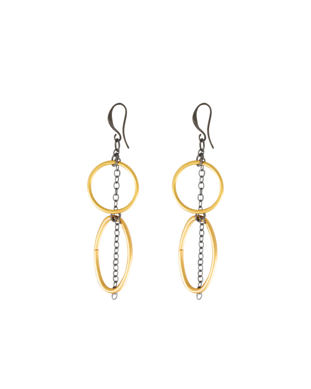 Dansk Copenhagen kulla ja hematiidiga kombineeritud rippuvad kõrvarõngad Tempeste Long 2 Tone Multi Gold/Hematite.