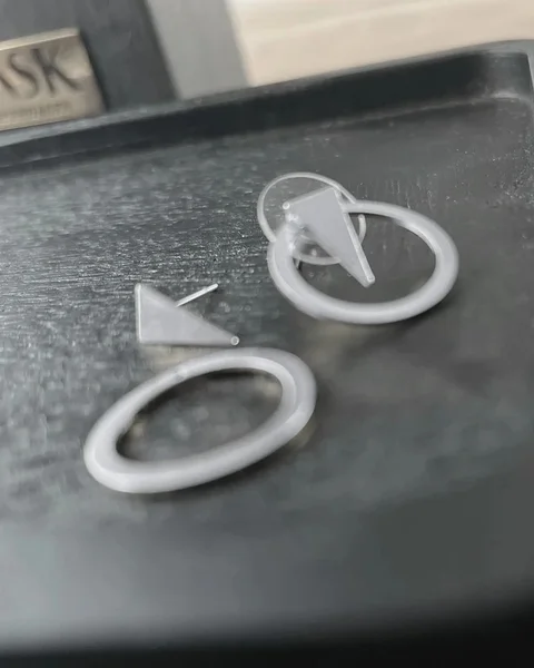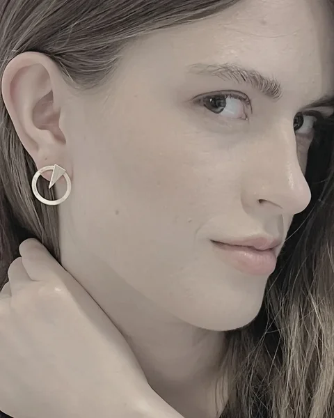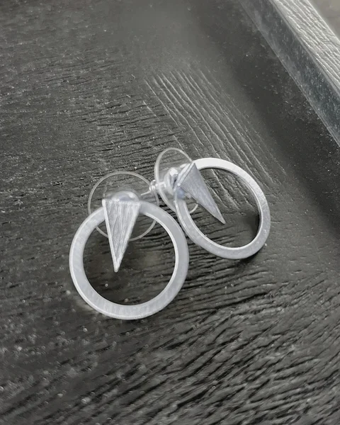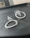 Dansk Copenhagen skulptuurse disainiga kaheosalised kõrvarõngad Theia 2in1 Triangle & Circle Silver.