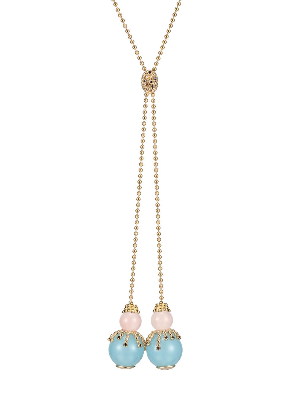 * Modellil kaelas teiste kristallidega Click & Clack kaelakee.