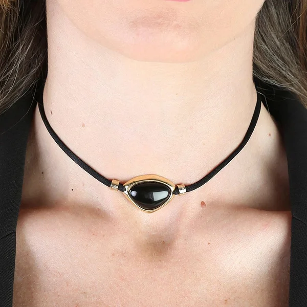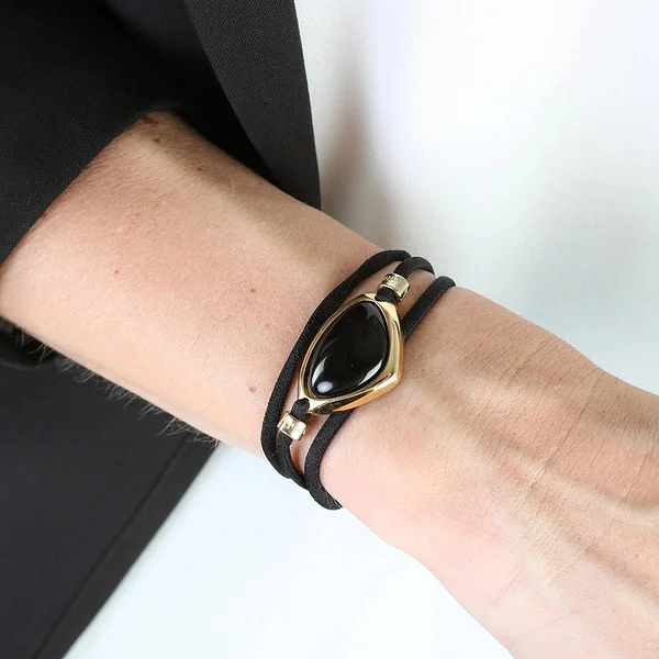 ÉMOLO kergelt veniva musta paelaga ehe, mida kaunistab must oonüks. Reguleeritav pikkus võimaldab kanda nii kaelaehtena kui käevõruna.