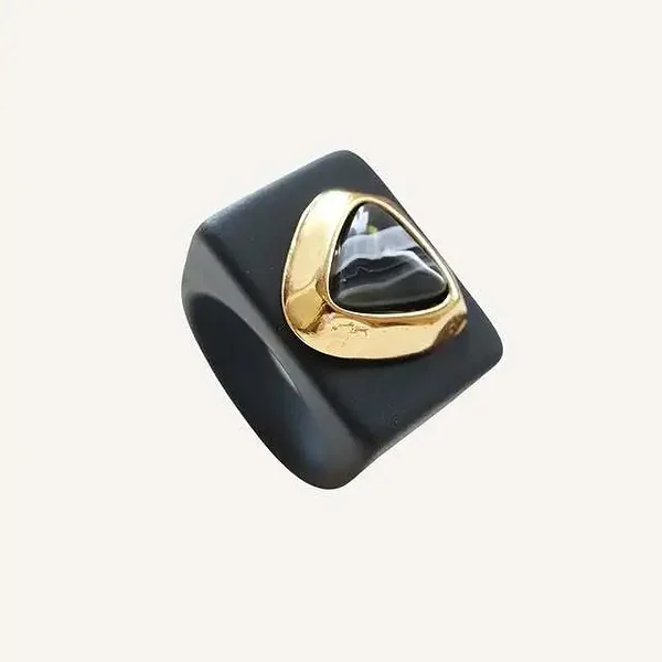 ÉMOLO must Statement sõrmus, mida kaunistab must triibuline ahhaat.