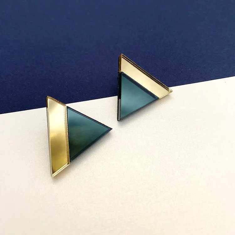 FULLMOON kolmnurgakujulised peegli efektiga kõrvarõngad. Kõrvas kerged ja mugavad.