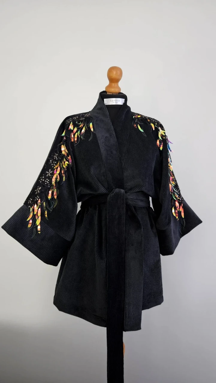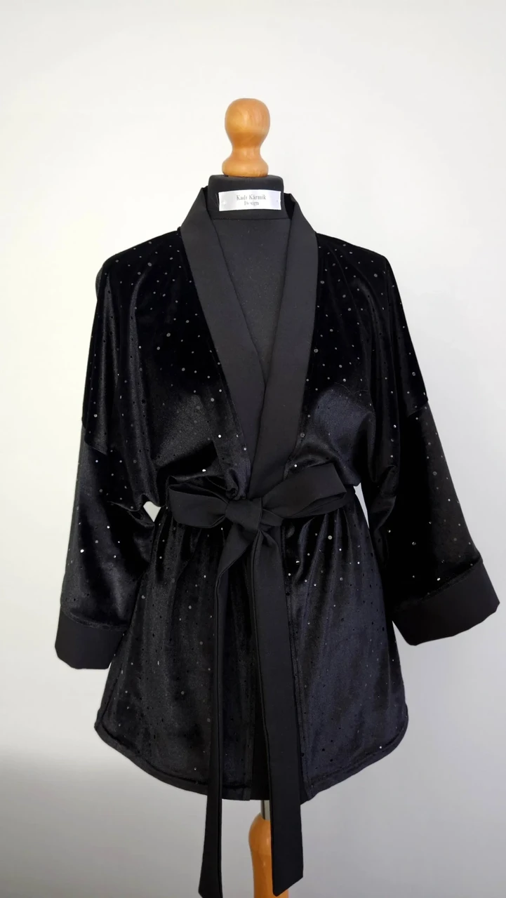 Kadi Kärmik Design kimonojakk - must sädelev samet