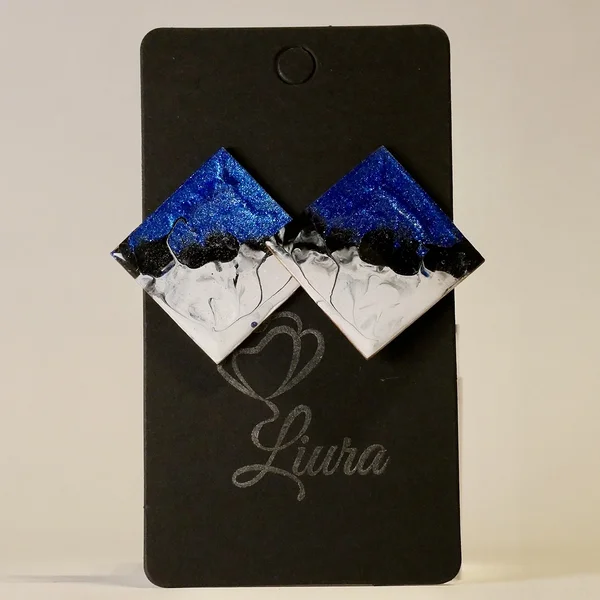 Liura kõrvarõngad Nelinurk - sinine/must/valge