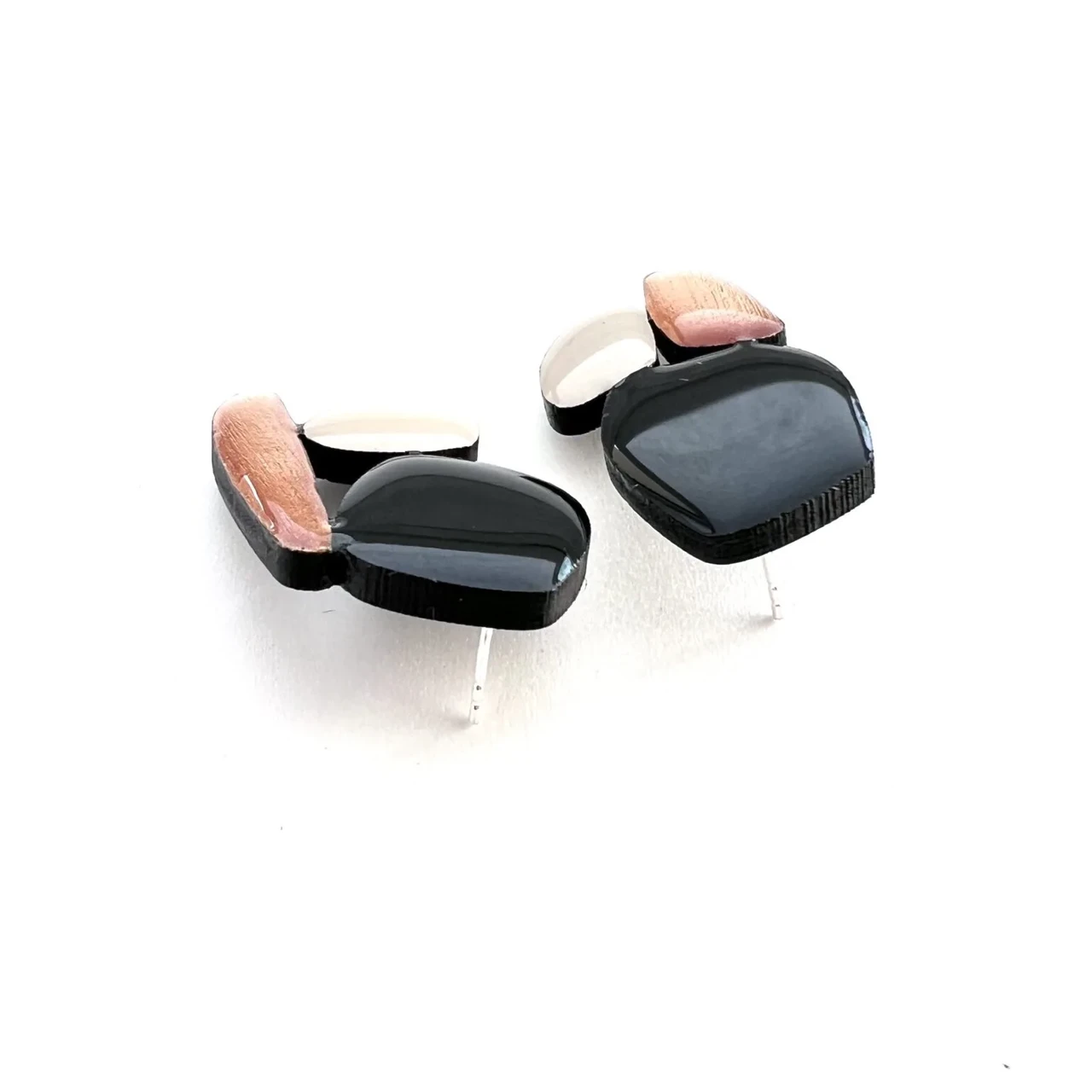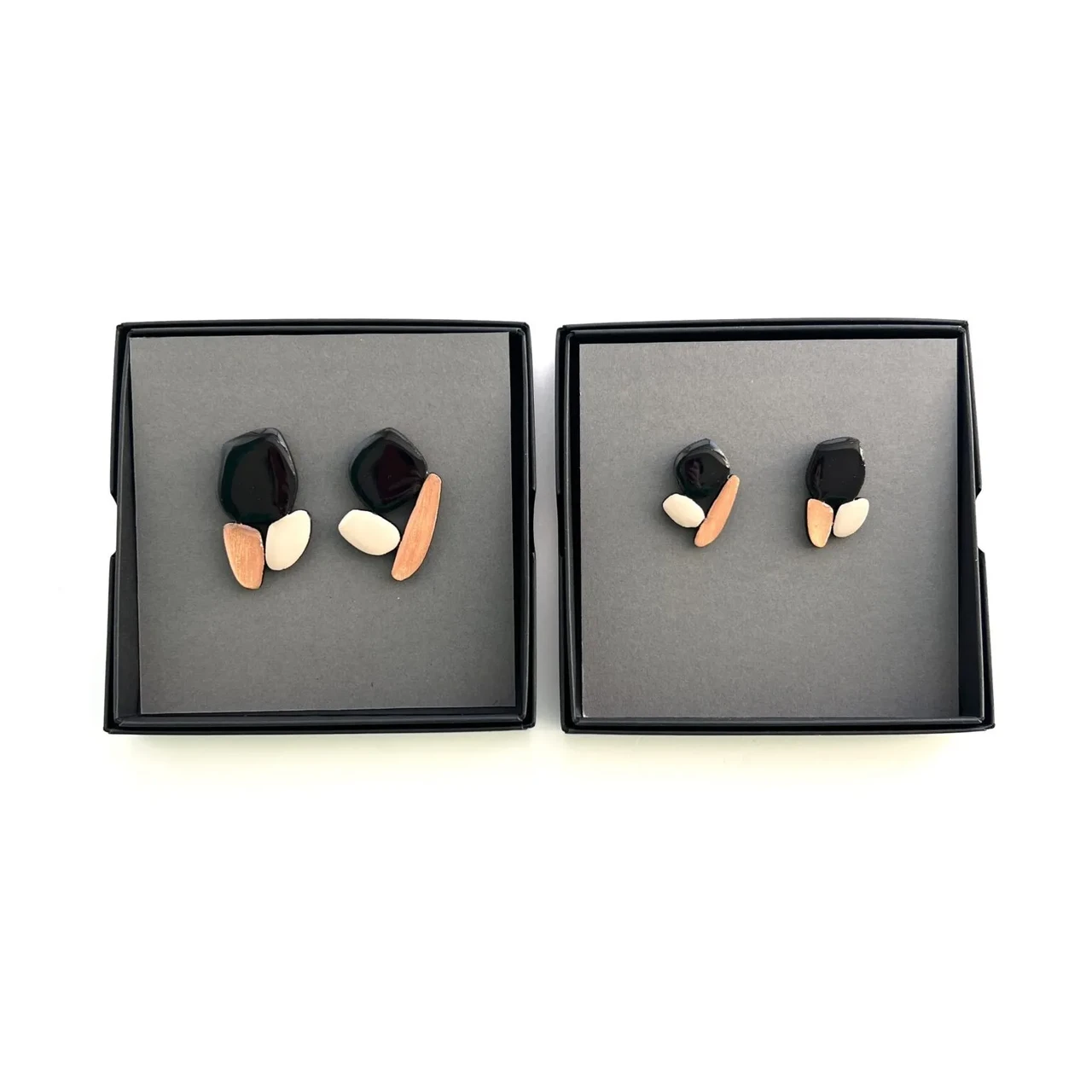 NADA glasuuritud kõrvarõngad L suurus - must/pronks/valge