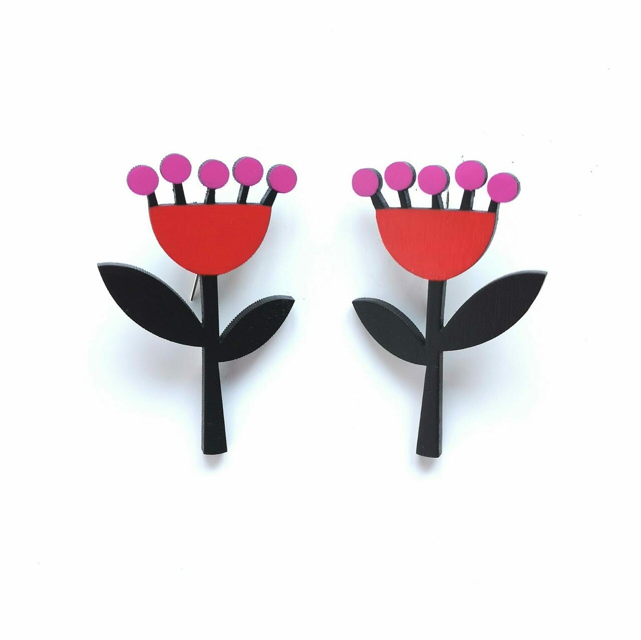 NADA kõrvarõngad Lilled - Punane/Roosa/Must