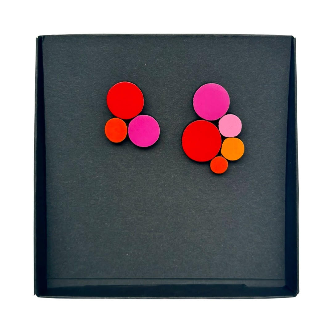 NADA puidust kõrvarõngad Geomeetria - Punane/Must/Valge/Fuksia