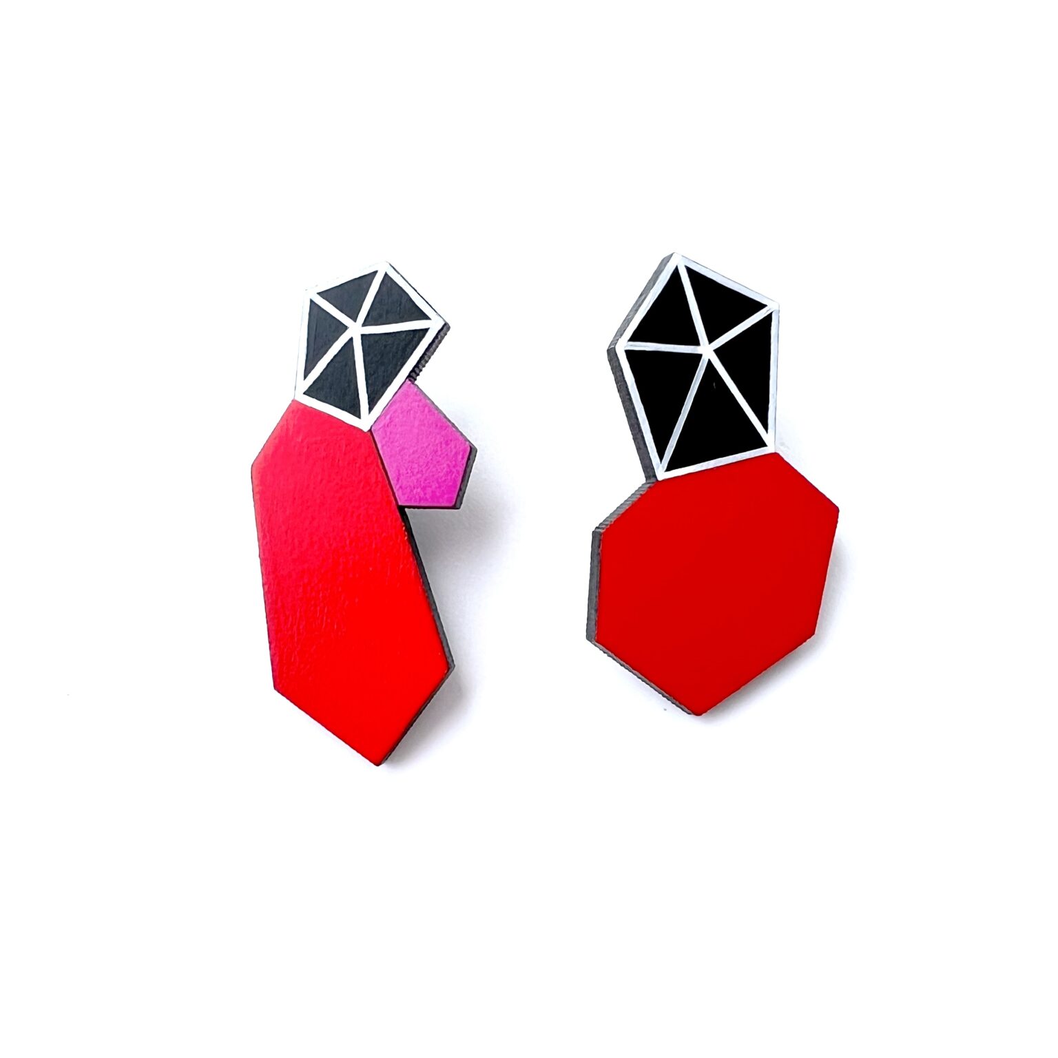 NADA puidust kõrvarõngad Geomeetria - Punane/Must/Valge/Fuksia