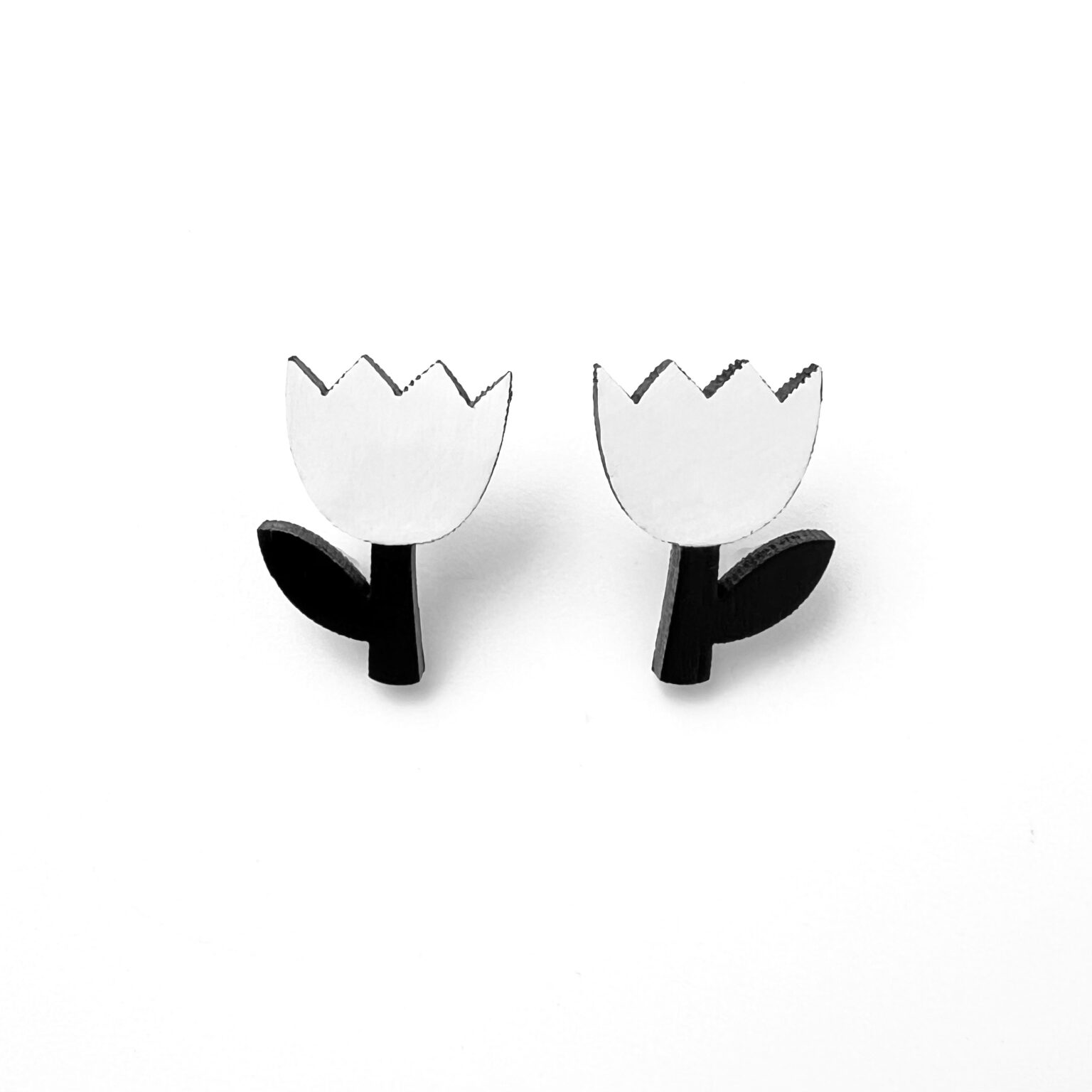 NADA puidust kõrvarõngad Tulbid - Valge/Must