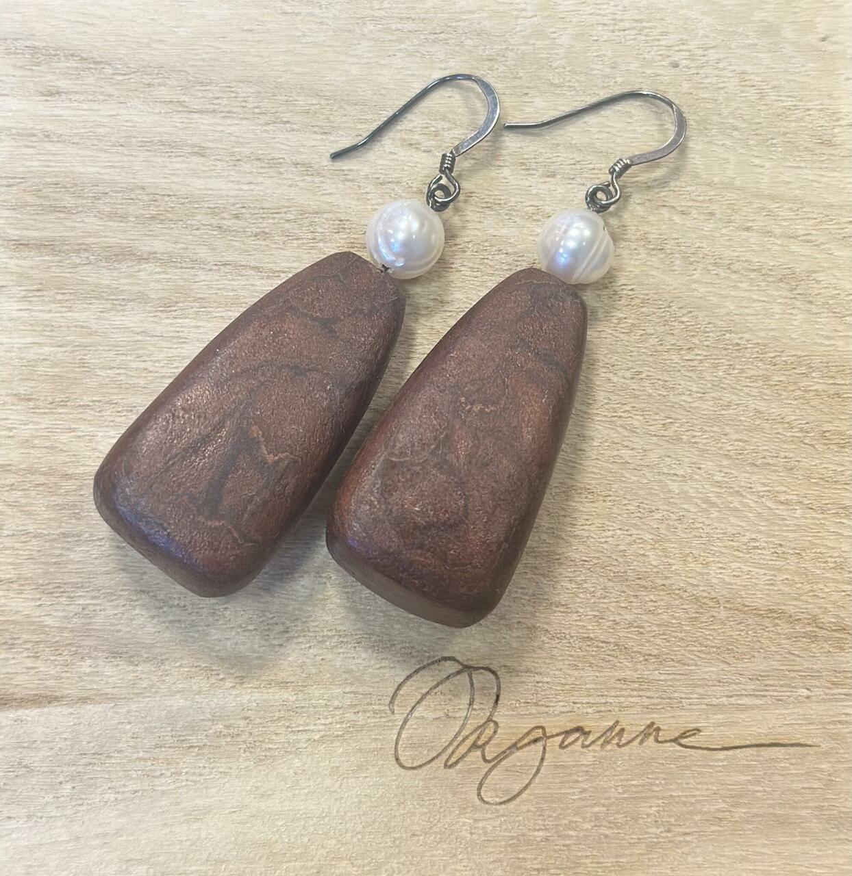 Kõrvarõngad WAVY - Ajupuit, jõepärl