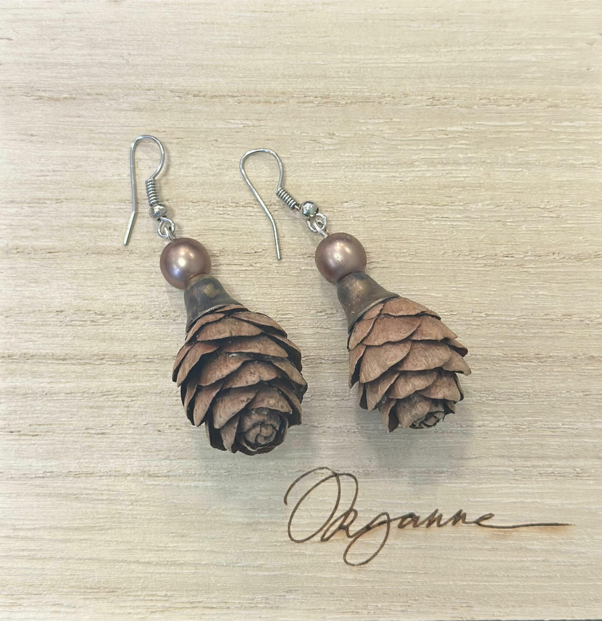Organne kõrvarõngad KÄBI - Pruuni pärli ja koonusega.