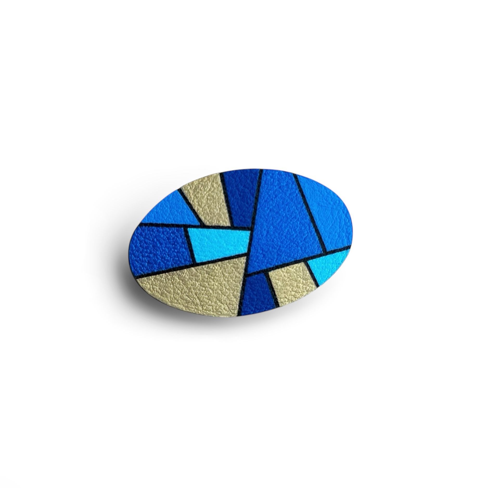 Värvid: Geomeetrilise mustriga värvitud nahk, hõbedane prossinõel (roostevaba teras). Tagumine pool on musta värvi.