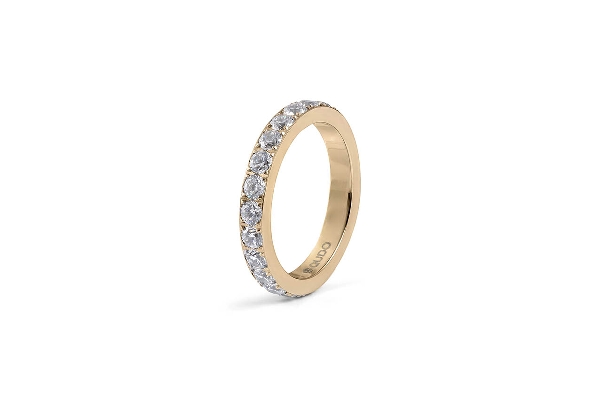 Ümberringi kivikestega kaunistatud Eternity Big vahesõrmus sobib kandmiseks iseseisvalt või koos Qudo baassõrmustega.