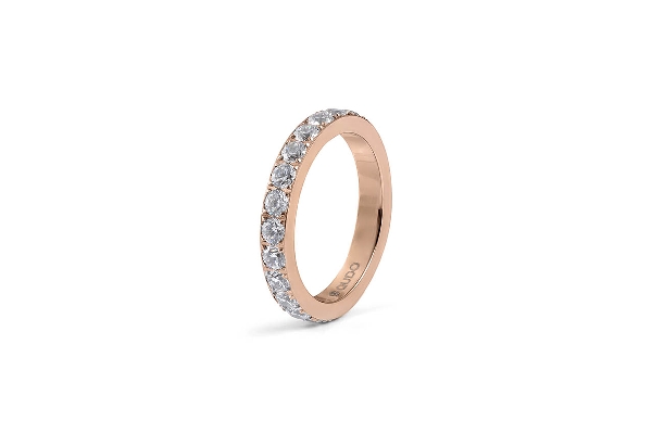 Ümberringi kivikestega kaunistatud Eternity Big vahesõrmus sobib kandmiseks iseseisvalt või koos Qudo baassõrmustega.