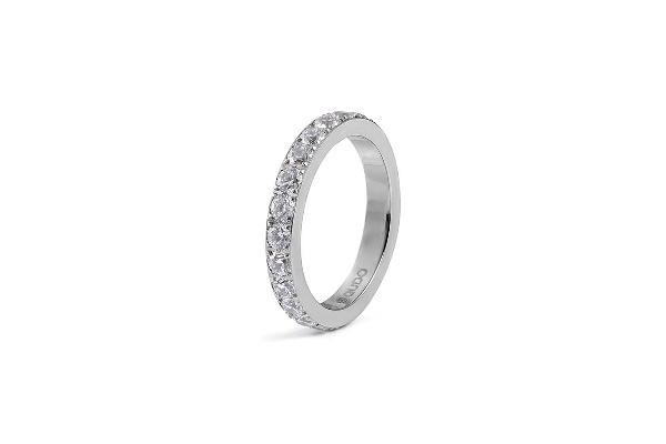 Ümberringi kivikestega kaunistatud Eternity Big vahesõrmus sobib kandmiseks iseseisvalt või koos Qudo baassõrmustega.