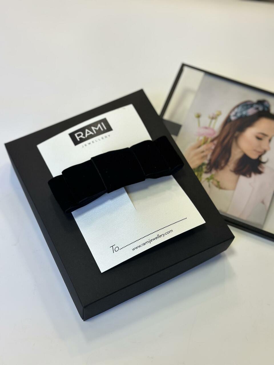 Sametist juukselips - Dark Grey Velvet Bow Barrette Mini