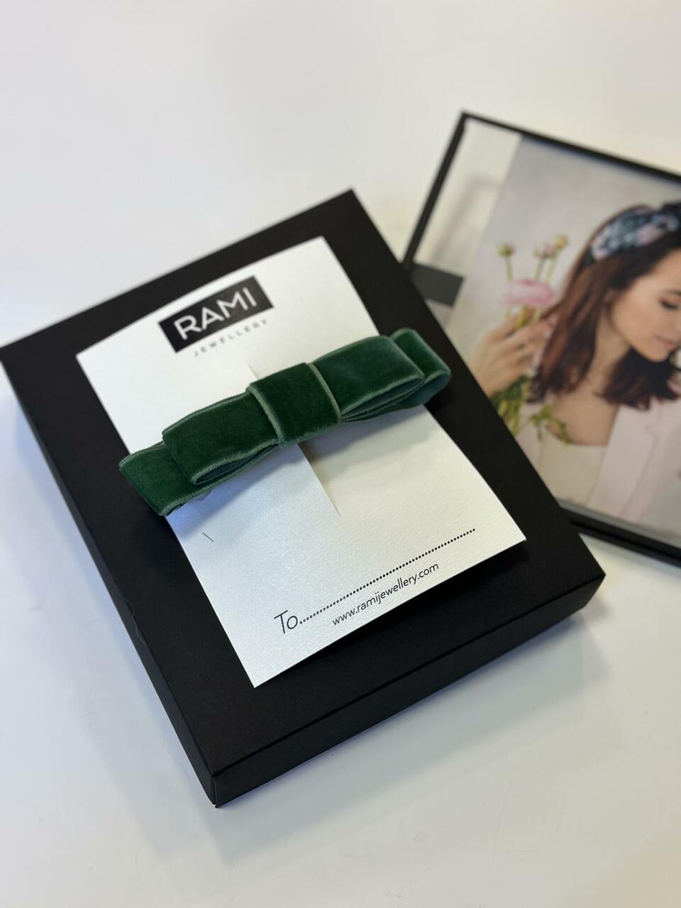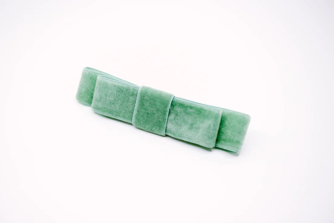 Sametist juukselips - Green Velvet Bow Barrette Mini