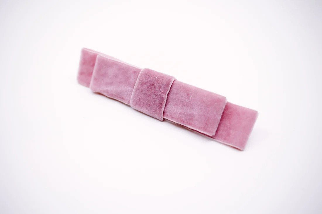 Sametist juukselips - Pastel Pink Velvet Bow Barrette Mini