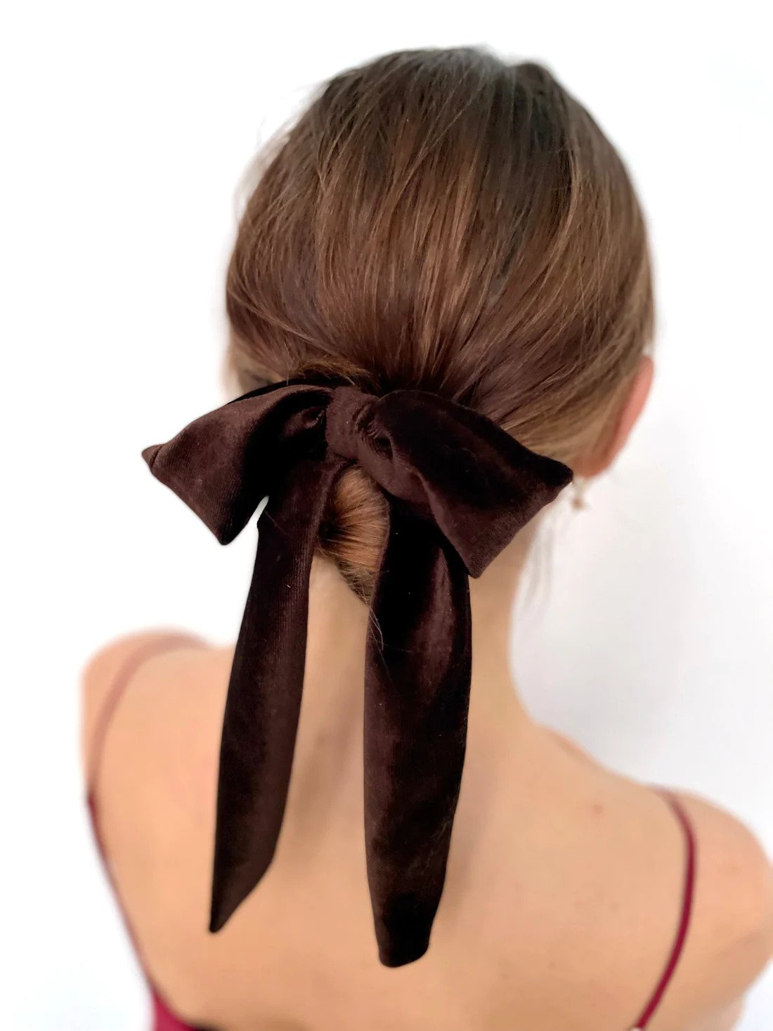 Sametist juukselips - Brown Velvet Bow Barrette Midi