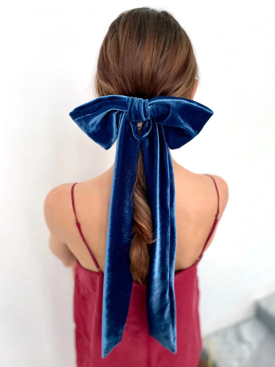 Sametist juukselips - Blue Velvet Bow Barrette Maxi