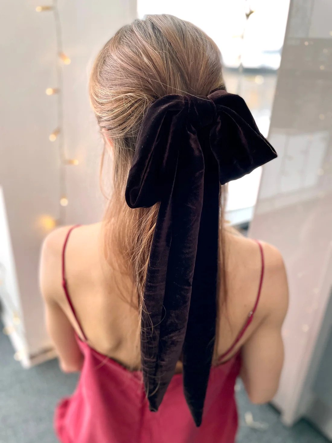 Sametist juukselips - Brown Velvet Bow Barrette Maxi