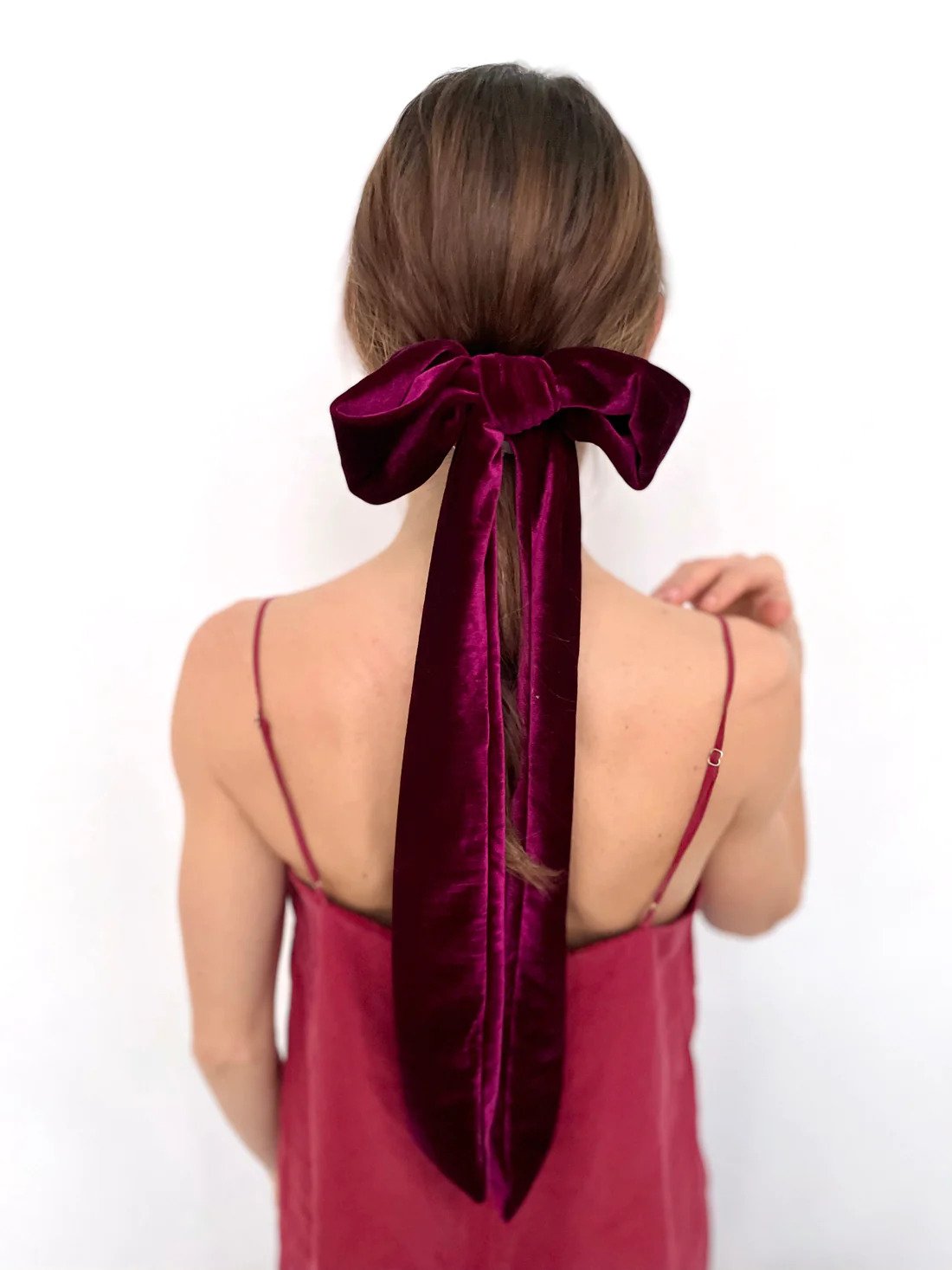Sametist juukselips - Burgundy Velvet Bow Barrette Maxi